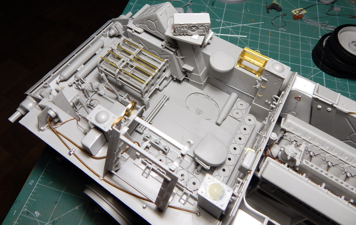 Так же из пластика сделал люк командира, в этом случае петли я скопировал с одностворчатой крышки из набора.