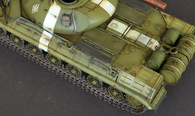 Шикарная окраска, модель несомненно удалась. Из видимых недостатков: тросы как-то неудачно свиты и висящая попа танкиста. Может ему подложить "подушку" из эпоксилина? Судя по аватаре вы с техникой непосредственно работаете и знаете как и что подкладывают на острые грани люков)))