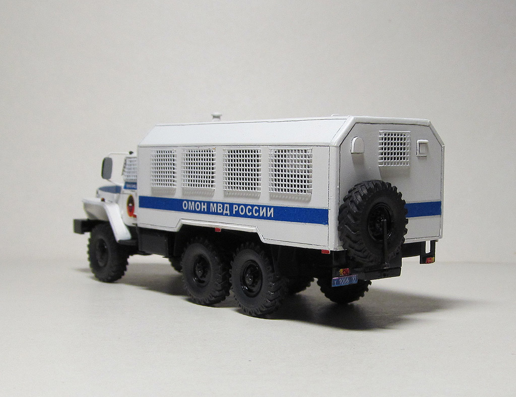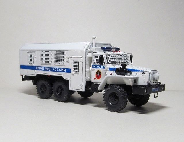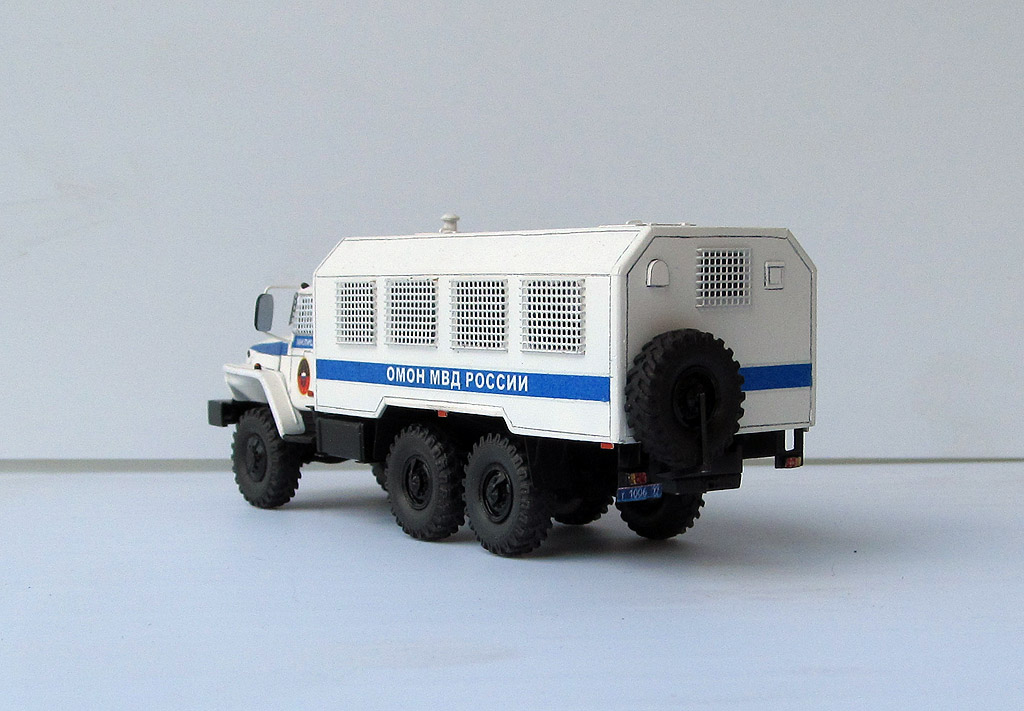 Доброго дня, коллеги! С праздником Победы Вас! Вот я и закончил очередной свой мегадолгострой ВМ-4320. Постройка этой модели начиналась более трёх лет назад в рамках групбилда "Техника сил охраны правопорядка". Все подробности работы и фото в процессе можно найти в соответствующей "сказке о стройке": http://karopka.ru/forum/forum193/topic16789/. Если коротко, то за основу взят всем знакомый набор от ICM, кабина и колёса от «Танкограда». Плюс к этому фототравленные решётки, сделаные на заказ коллегой JeanFerra и декали сделанные Георгием Сушковым, за что им обоим огромное СПАСИБО, парни, без вас эта модель вряд ли была бы доведена до ума. Колпаки на передних колёсах, брызковики, замки капота и крышка бензобака- тоже травление, от московских коллег с АСЕ-форума.