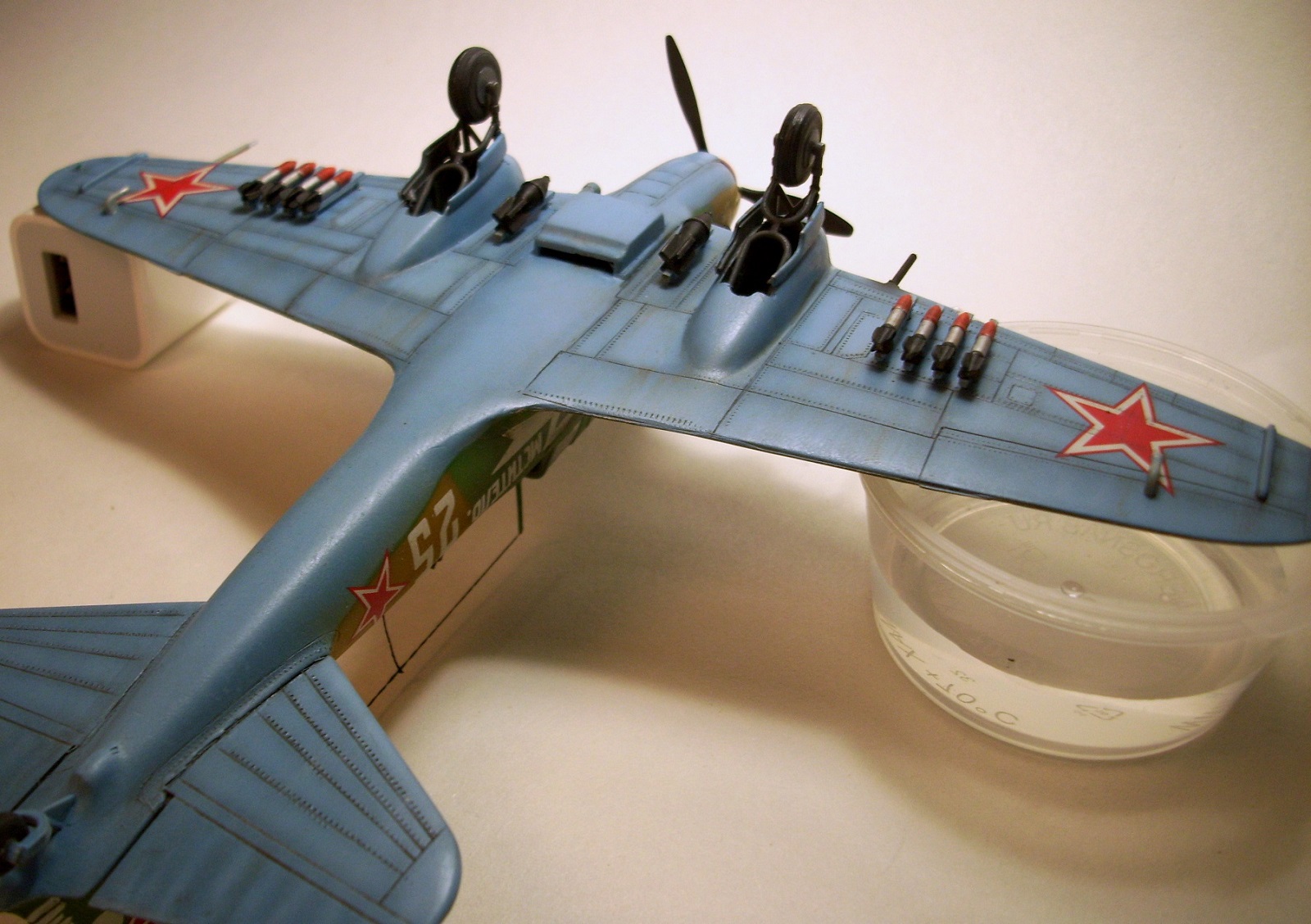 Коллеги, я не понимаю, откуда пошла мода красить головки РСов в красный цвет? Какой то неадекватный моделист когда то давно, как то по-детски разукрасил РСы, и понеслось... Не однократно видел модели Илов с такими "новогодними" реактивными снарядами. Это смотрится так, словно на взрыватели одеты некие пластмассовые, современные, предохранительные колпачки, которые "необходимо ремувить перед взлетом". :-)))