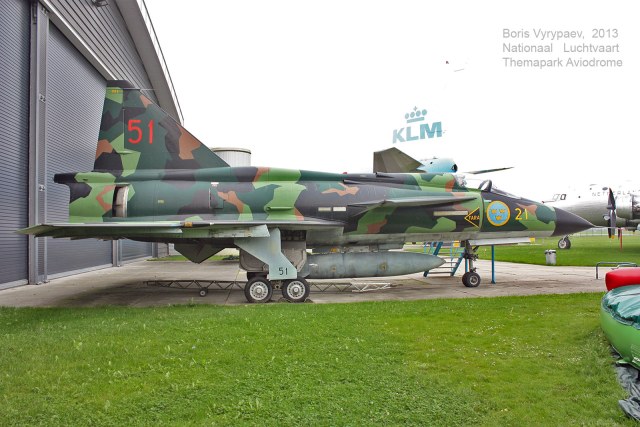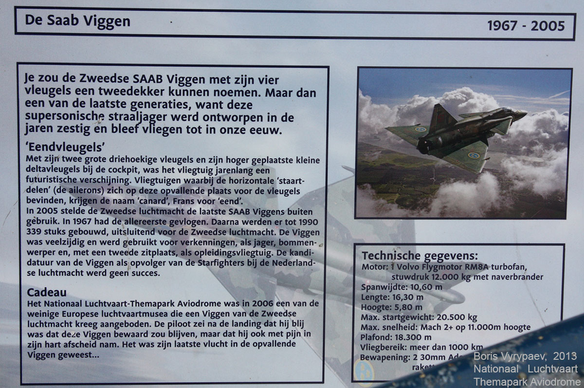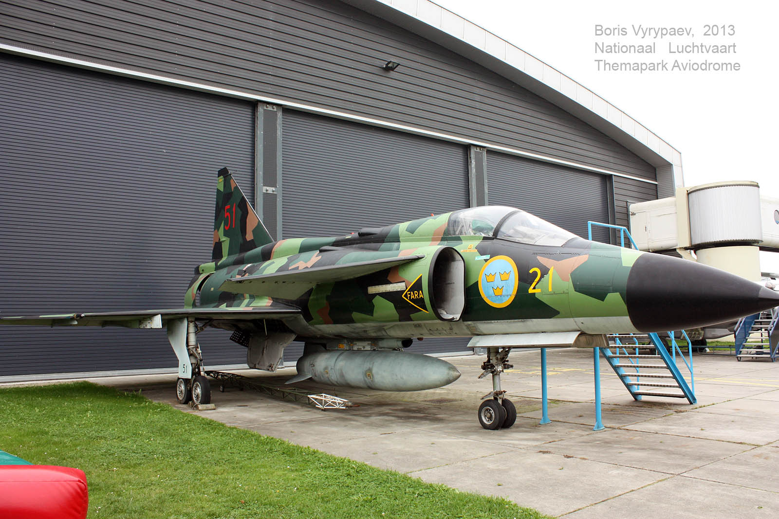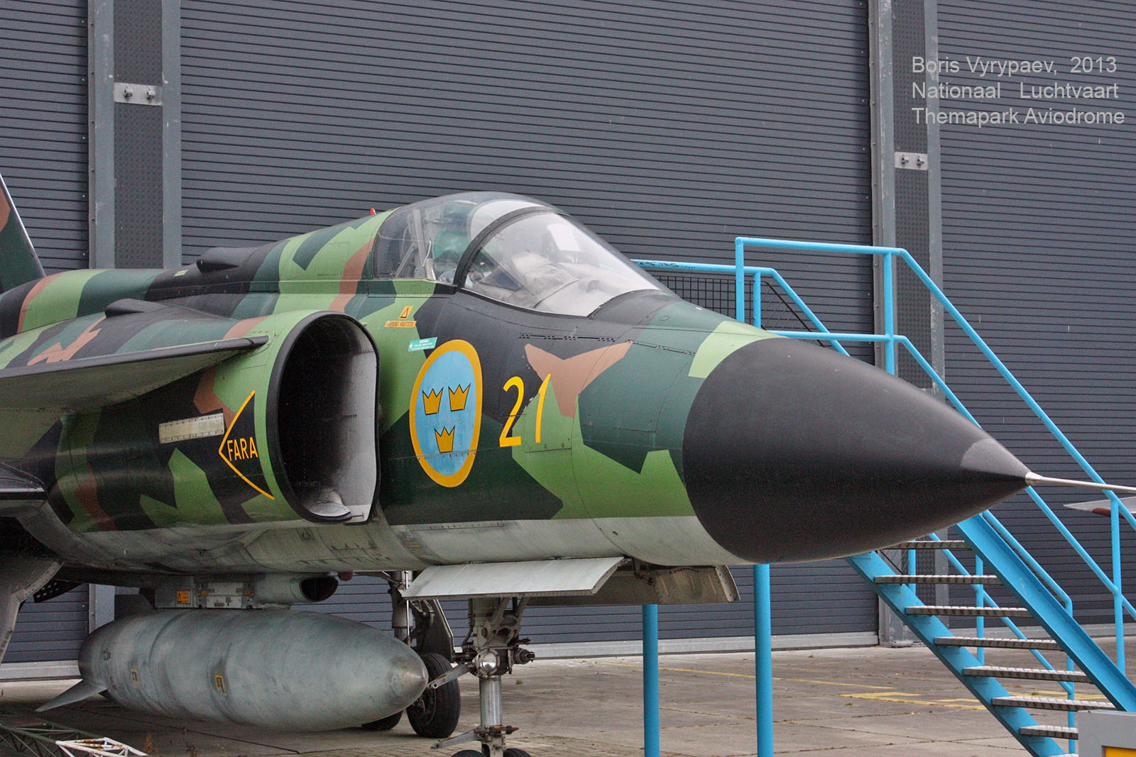 Очередной экспонат из Голландского музея авиации Nationaal Luchtvaart-Themapark Aviodrome, шведский истребитель SAAB J-37 Viggen