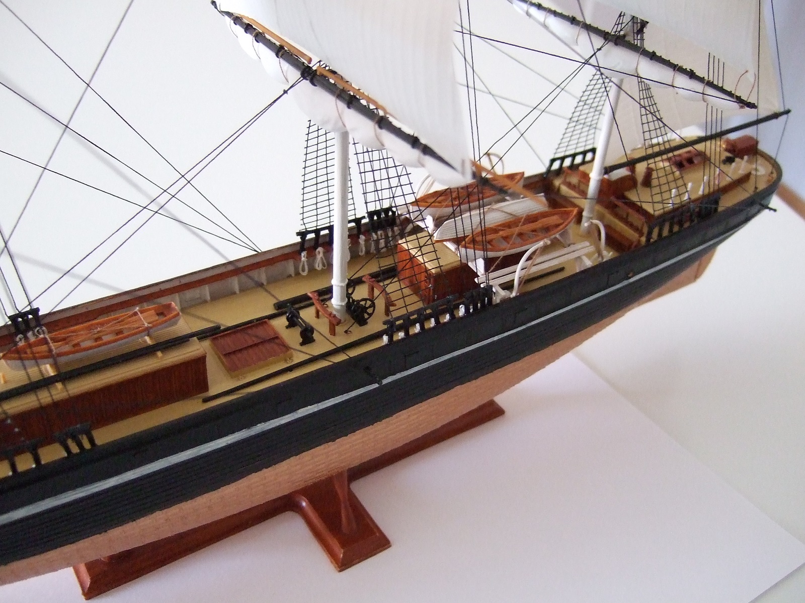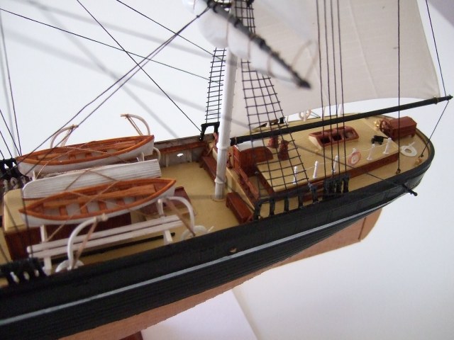 Дальше фото хороши, но на них хорошо видно недоработки и огрехи ( Светлана уже озвучила их). Ещё бы добавить фото инструкции и удлинить описание списком дополнительных работ. Сейчас остаётся только догадываться о проведённых улучшениях. Ванты лучше делать "по месту", появится возможность выравнять мачты. Пока песочница.