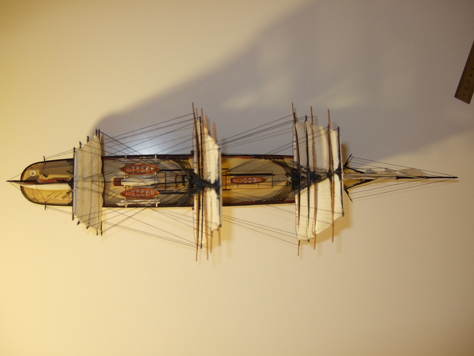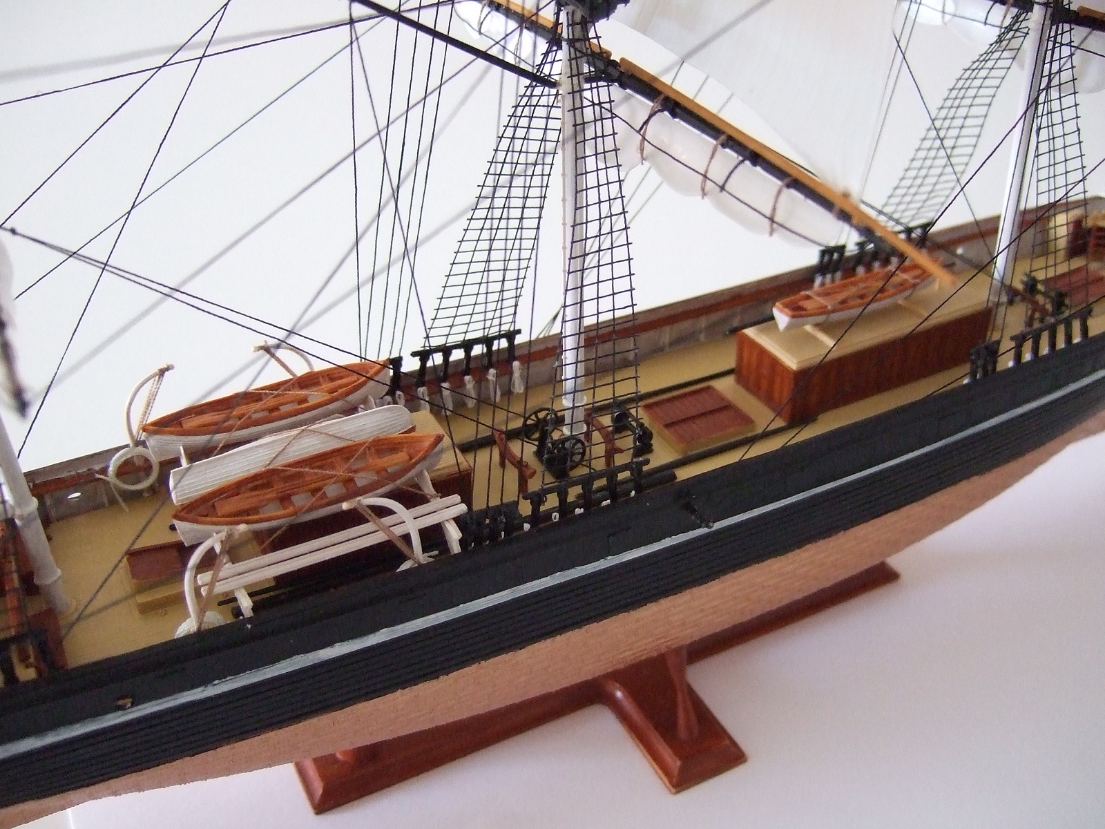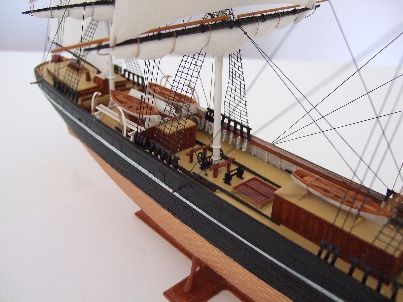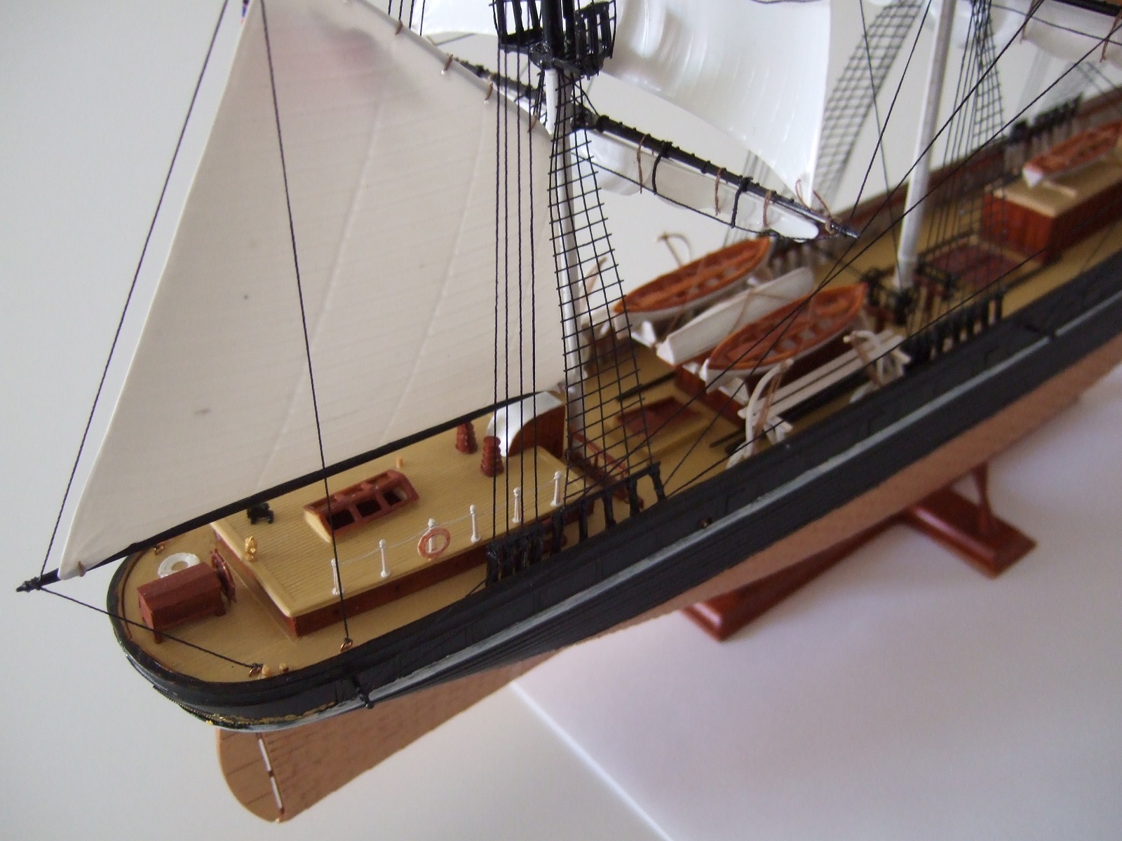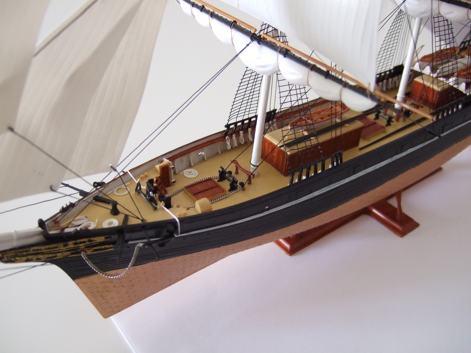 а вот весь такелаж, особенно ванты, паруса, лично мне не понравился совсем.... а это обычно по сути - 70, а то и все 80 процентов всех трудов и времени по созданию модели парусника.... и да, якорные цепи вообще из другого измерения.... ну и остальные замечания коллег, по-моему тоже вполне справедливы....