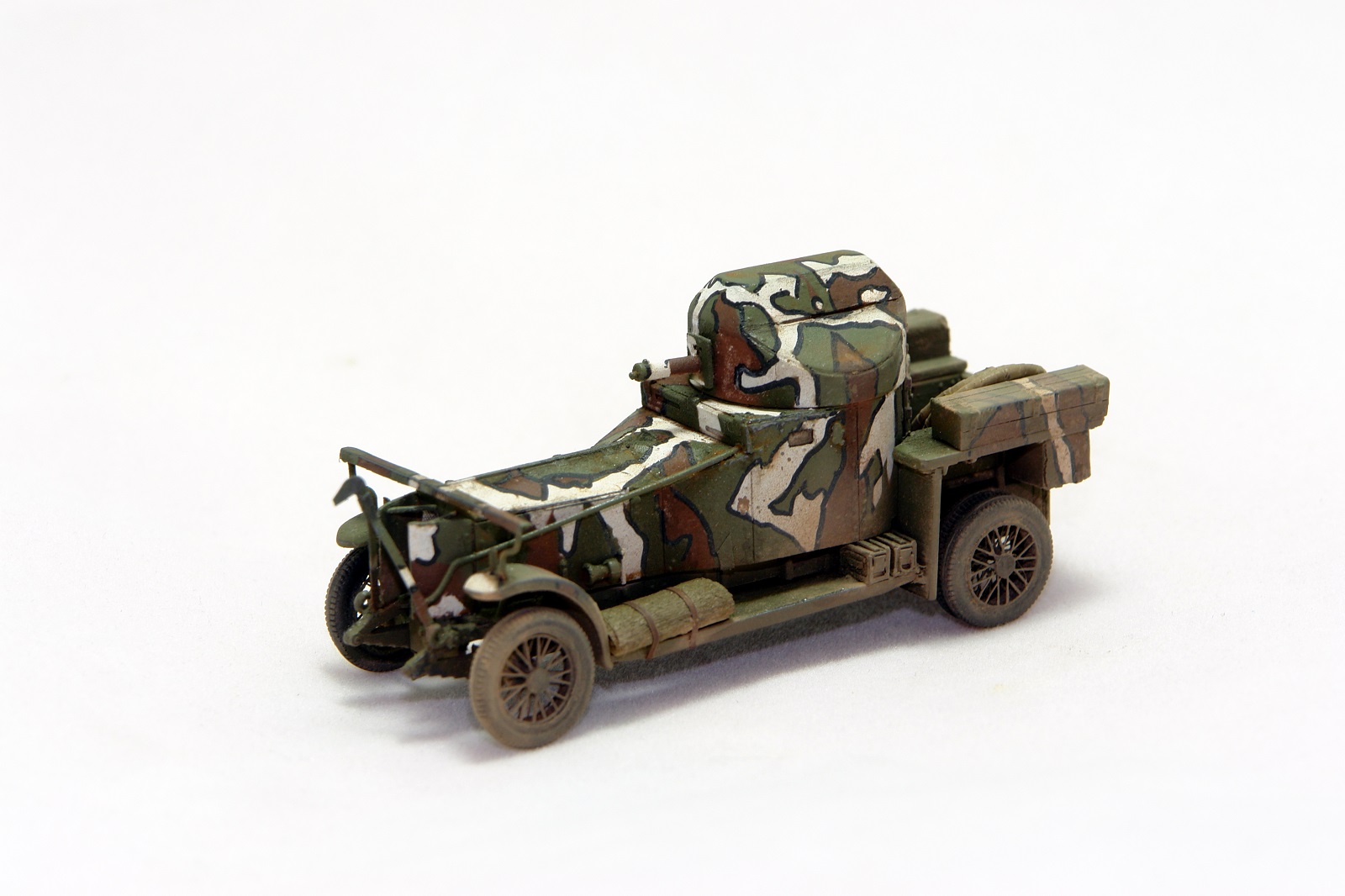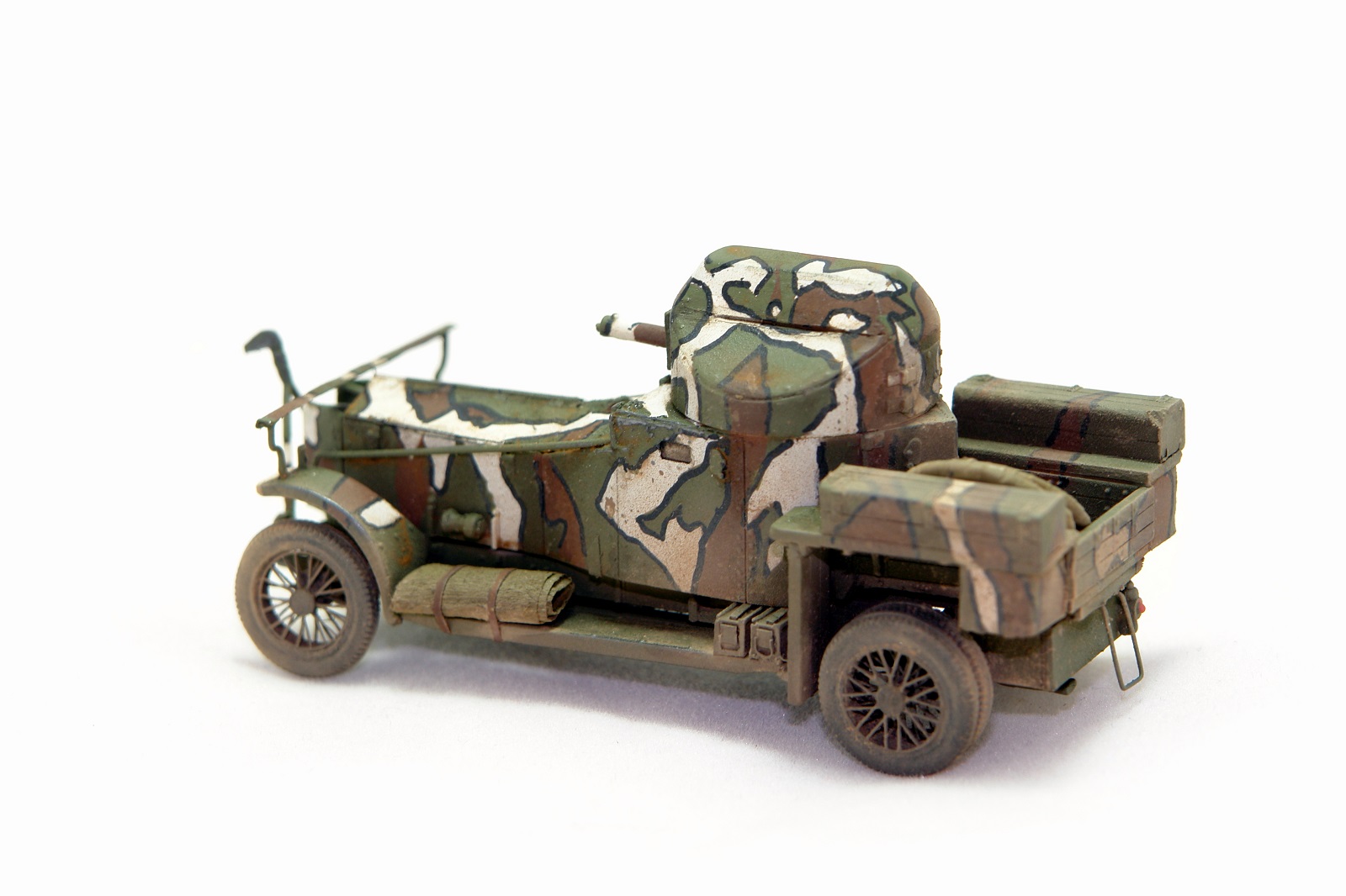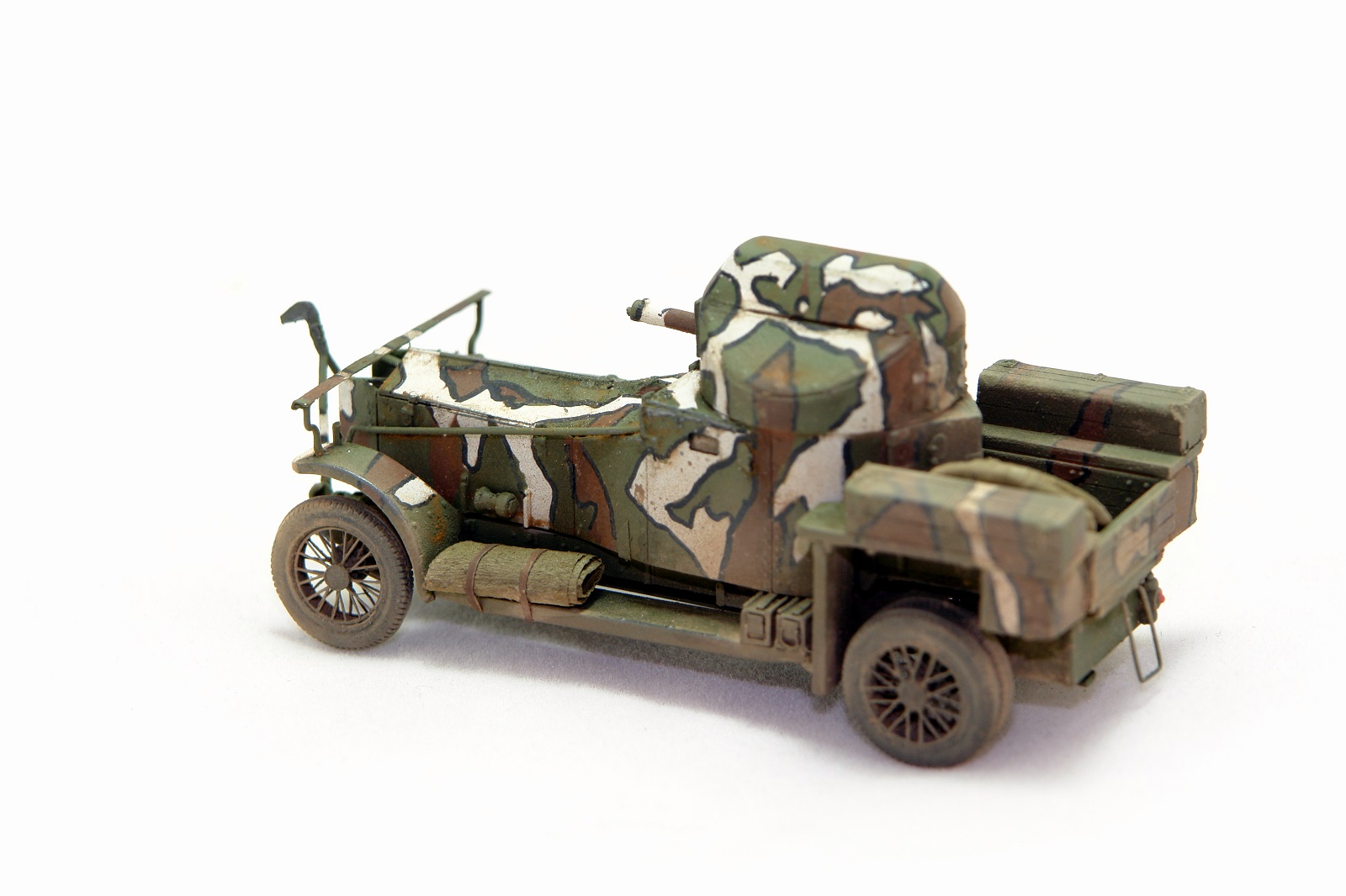 Представляю вашему вниманию модель БА RollsRoycepattern 1914 MK1. Это конверсия из модели Роден образца 1920 что вышла в конце прошлого года. Я думал сделать обычную модель времен войны на ближнем востоке, но во время поиска фото прототипа наткнулся на изображение БА компании на Западном фронте с необычным камо, интересной башней и крюком для колючки. Я решил делать воспроизвести этот прототип. Как оказалось, фото было сделано по дороге между Аррасом и Камбре , в деревне Тиуа-ле-Мофлен в 1917 году. Пока информации о взаимодействии Роллс Ройсов и танков не обнаружено, но само расположение броневиков говорит о многом. Видимо эта страница истории Великой войны ещё ждет своего открывателя.