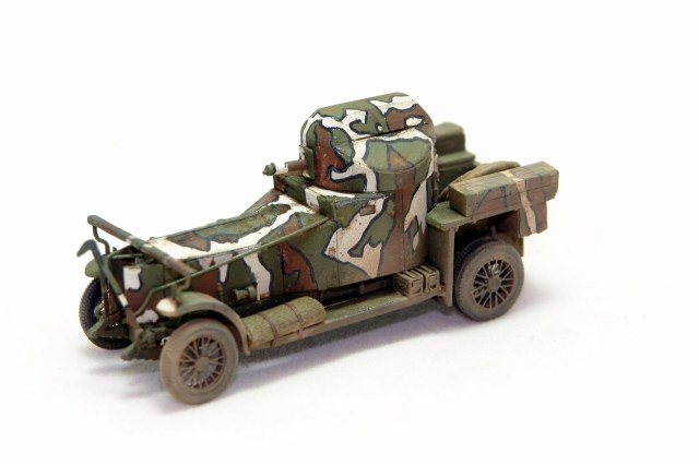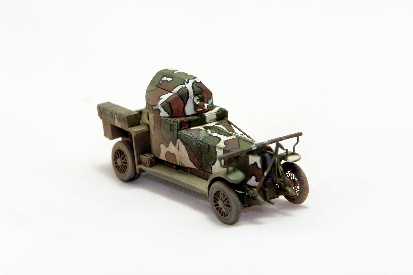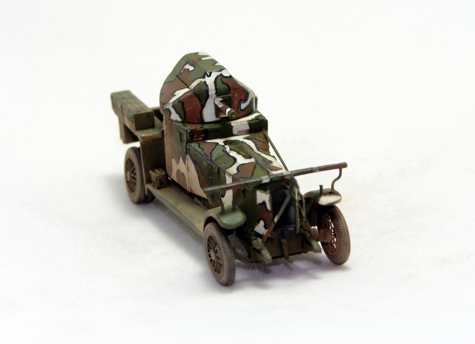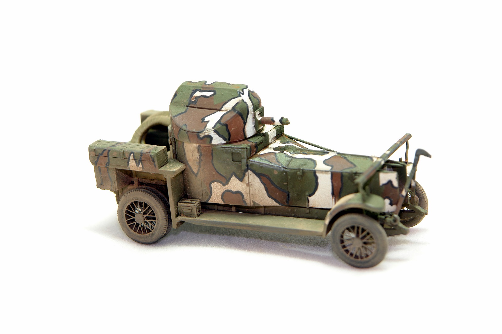Представляю вашему вниманию модель БА RollsRoycepattern 1914 MK1. Это конверсия из модели Роден образца 1920 что вышла в конце прошлого года. Я думал сделать обычную модель времен войны на ближнем востоке, но во время поиска фото прототипа наткнулся на изображение БА компании на Западном фронте с необычным камо, интересной башней и крюком для колючки. Я решил делать воспроизвести этот прототип. Как оказалось, фото было сделано по дороге между Аррасом и Камбре , в деревне Тиуа-ле-Мофлен в 1917 году. Пока информации о взаимодействии Роллс Ройсов и танков не обнаружено, но само расположение броневиков говорит о многом. Видимо эта страница истории Великой войны ещё ждет своего открывателя.