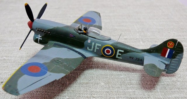О модели. Да, Темпест хорош был. Из него можно при старании сделать неплохую модель, что и показал ваш уважаемый коллега Только вот ниши шасси не на месте и, конечно же, этот жуткий фонарь. Я купил свой первый Темпест ещё в 1988 году, и уже тогда фонарь был мутным, неопределённой формы грубым кусочком полистирола. Пролетели ФРОГовские разработчики и со стойками шасси. Что стоило им сделать эти стойки такими-же, как и у Си-Фьюри? Детали же аналогичны. А модель Си-Фьюри была разработана гораздо раньше, чем Темпест. И ещё о Си-Фьюри. Лопасти на ФРОГовской модели этого самолёта изначально тоже даны были отдельными деталями и все пять лопастей надо было правильно склеить относительно друг друга и кока винта, что явно не очень просто. А на отливках НОВО мы видим винт цельный. Почему такое не сделали с лопастями Темпеста - загадка.