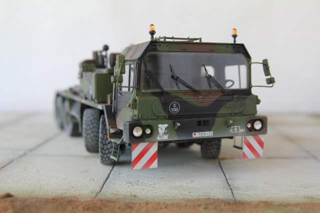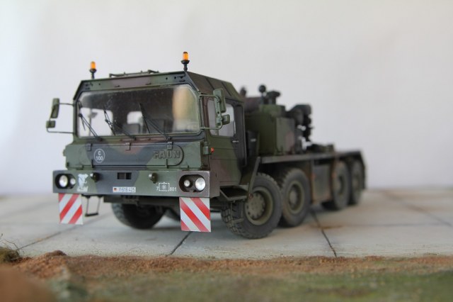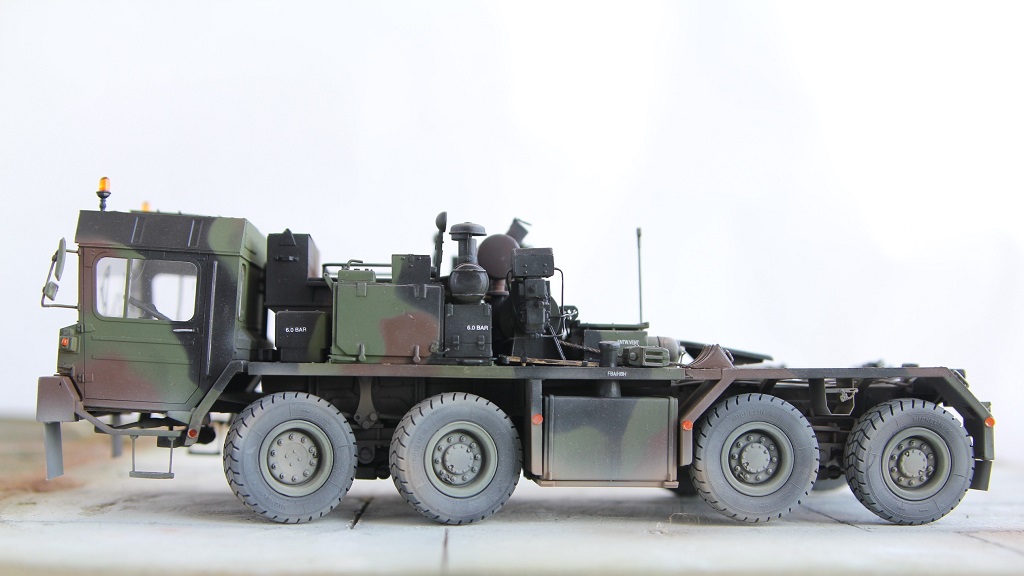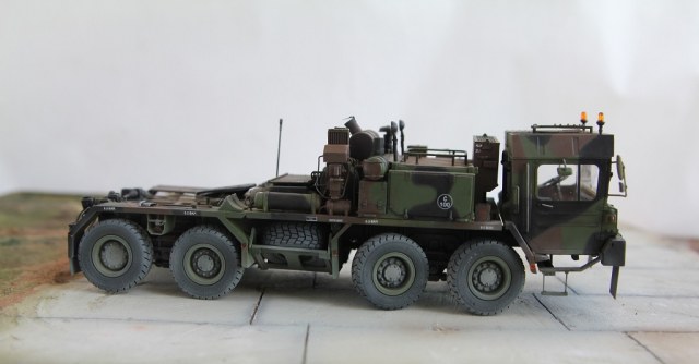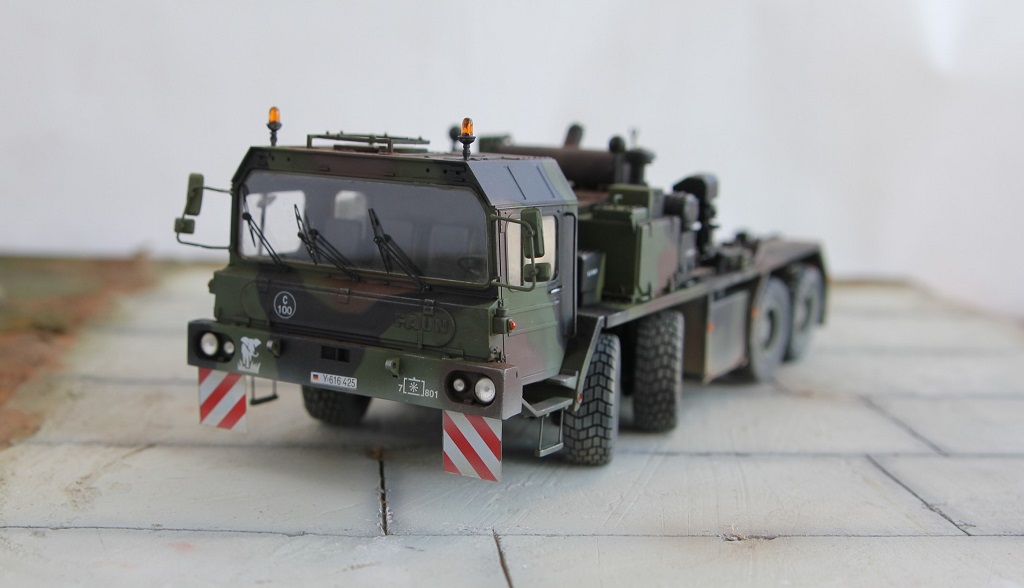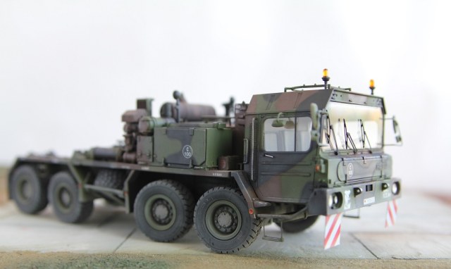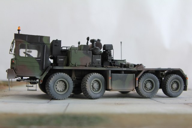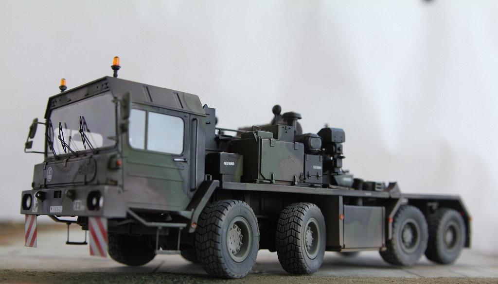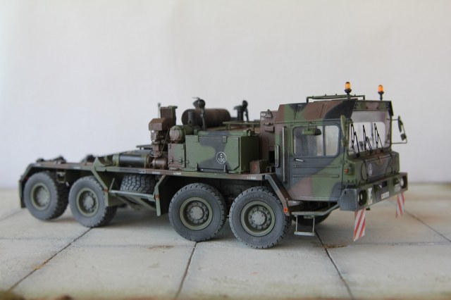 Доброе время суток! Добрался я наконец то до запыленной коробки подаренной мне, и пролежавшей более года. В планах сделать диораму с участием прицепа(он еще в процессе сборки) какой то еще техники, и фигурок. По сборке особых проблем не было, наверно за исключением что много следов от толкателей пришлось шпаклевать. Модель делаю из коробочную, потом заменю троса. Из доработок заменил фары на эльфы, заменю троса, переделал люстры,добавил крышку на выхлопную трубу. Красил акрилом от тамии .Приятного просмотра!