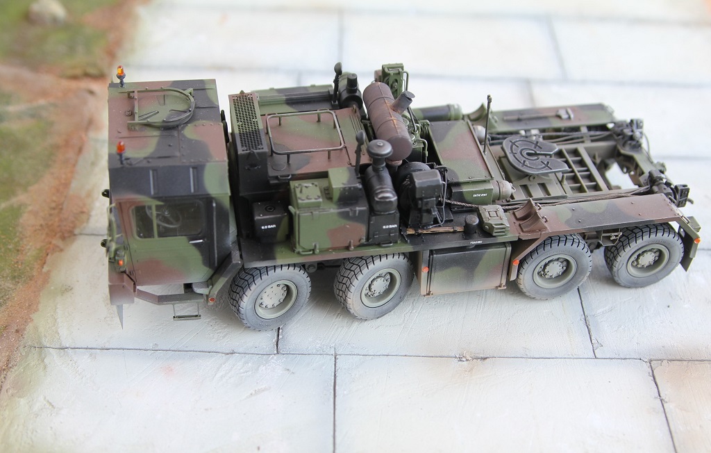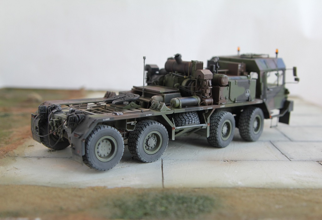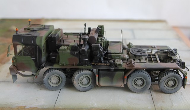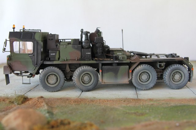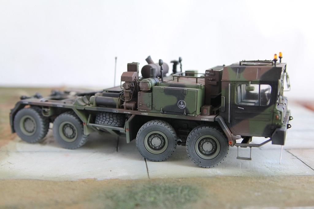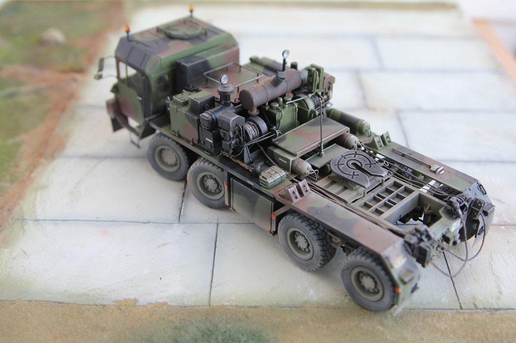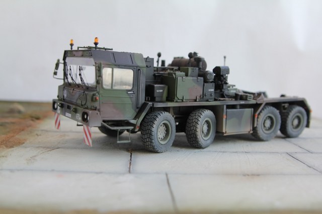 Доброе время суток! Добрался я наконец то до запыленной коробки подаренной мне, и пролежавшей более года. В планах сделать диораму с участием прицепа(он еще в процессе сборки) какой то еще техники, и фигурок. По сборке особых проблем не было, наверно за исключением что много следов от толкателей пришлось шпаклевать. Модель делаю из коробочную, потом заменю троса. Из доработок заменил фары на эльфы, заменю троса, переделал люстры,добавил крышку на выхлопную трубу. Красил акрилом от тамии .Приятного просмотра!