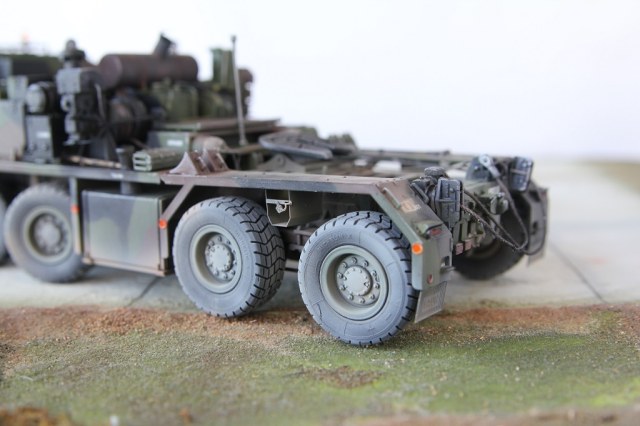Так как на тягаче второй мост по ходу движения не ведущий то, соответственно, и диск у колеса будет другой. Проверьте 13 шаг инструкции по сборке. Должно быть так :