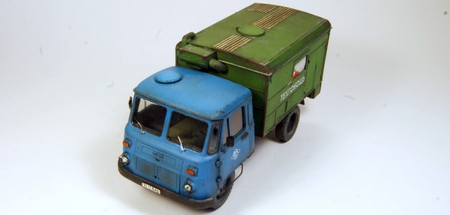 Новинка от венгров из Balatonmodell, ГДРовский грузовик Робур был достаточно известен в 80-90 годы на территории стран Варшавского договора, и выпускался как в армейских так и в гражданских вариантах. Набор представляет медицинский вариант использовавшийся в армиях ГДР и Венгрии. Качество литья отличное, деталей не очень много, есть плата с травлом и плёнка для окон. Но все положительные впечатления напрочь обнуляет инструкция по сборке, в ней отсутствует порядка 50 процентов описания сборки, а те что указаны за частую можно использовать только при наличии фото реальных машин, чтобы понять где и как должны располагаться детали и узлы.