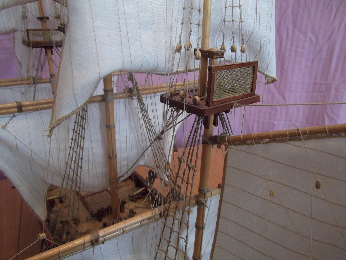7. концы вант, обвязывающие верхние юферсы должны быть привязаны к вантинам, а не топорщиться в разные стороны.... да и на сами эти концы, в таком масштабе неплохо было бы наложить марки, чтобы верёвка на них не расплеталась....