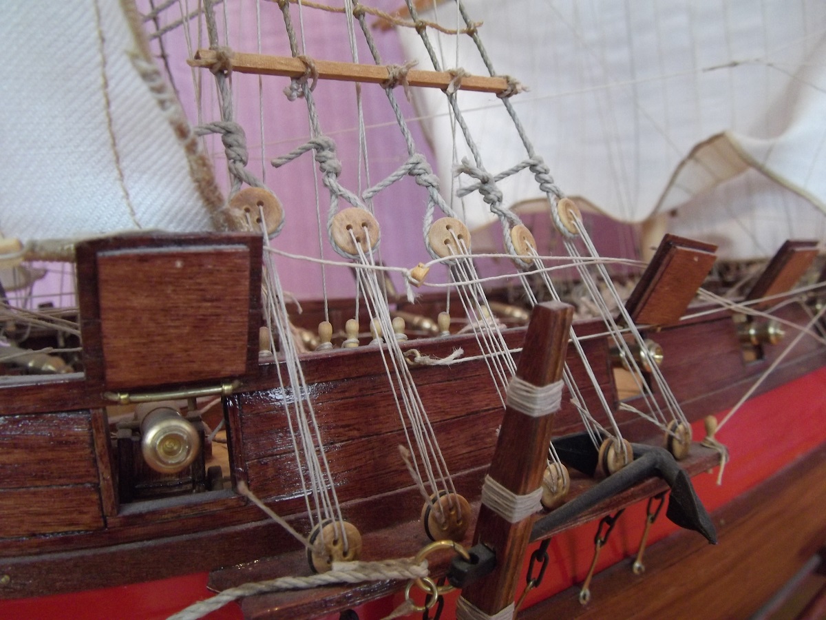 1. стоячий такелаж такого же светлого цвета, что и бегущий.... такого не может быть... стоячий такелаж тировали регулярно (смолили)... он должен быть тёмным (коричневым, тёмно-серым, или чёрным)....