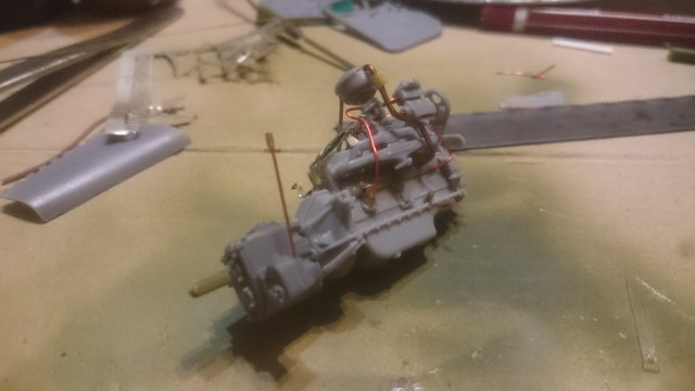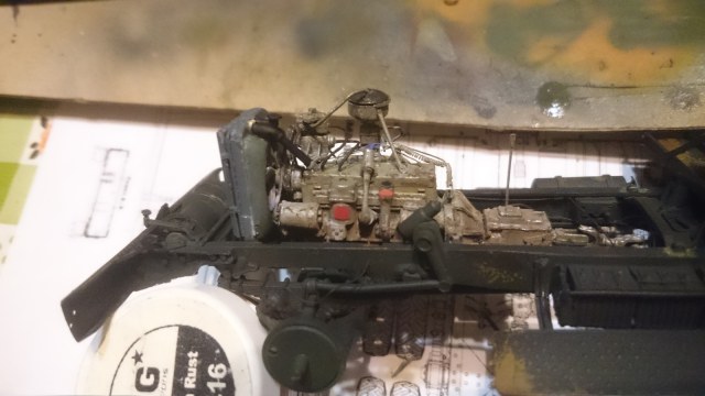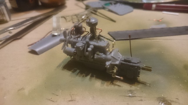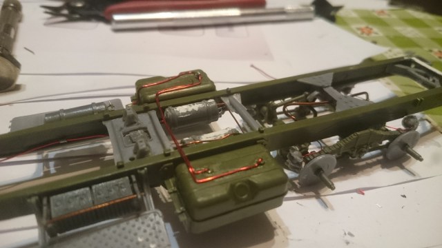 Хорошо получилось, но с тросом лебёдки перемудрил. Заправлен в обратную сторону, пропущен через опорную скобу "кривого стартера" и барабан проглядывается. Как ни как фасад модели.