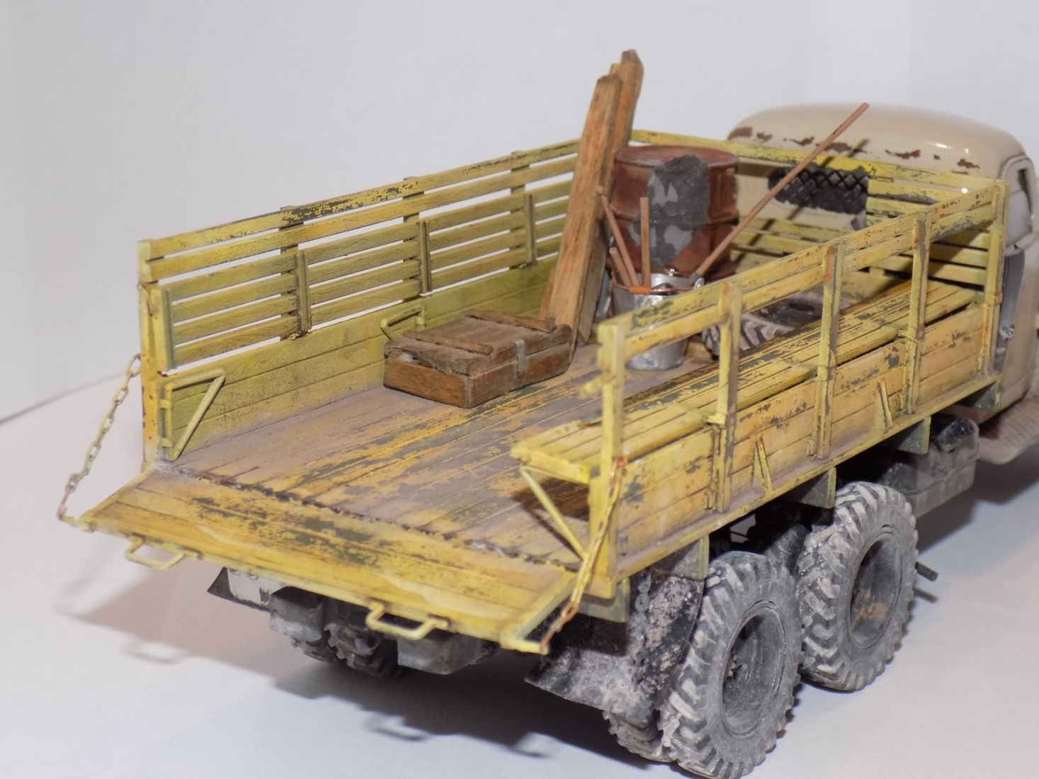 Понравилось, особенно кузов! Кабина выглядит странновато: сколы крупные, будто краска хлопьями облезла, и в то же время в общем сверкает лаком.