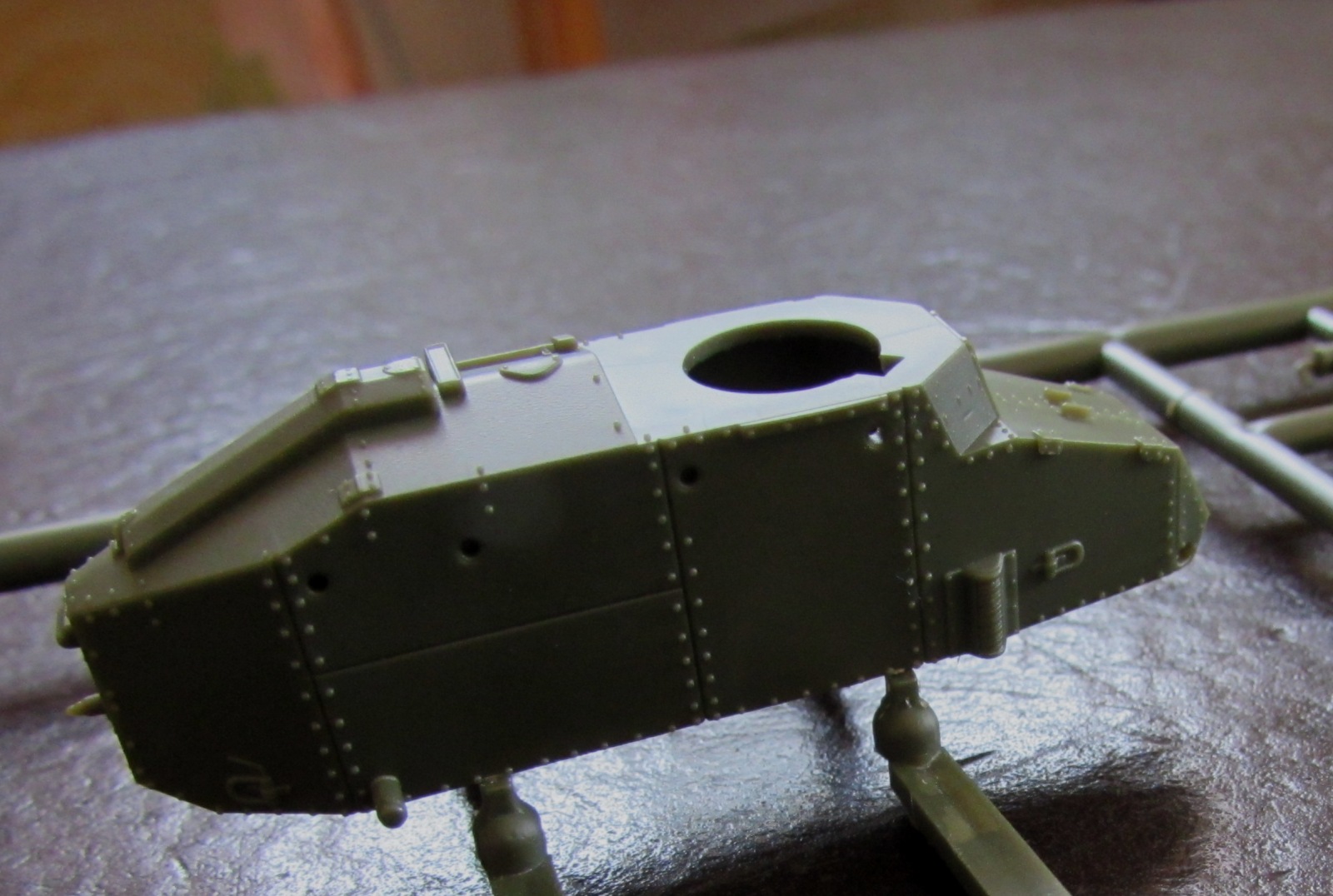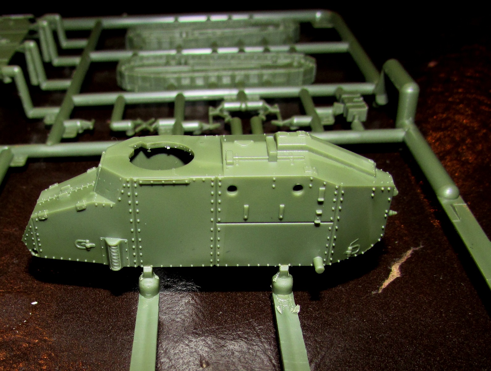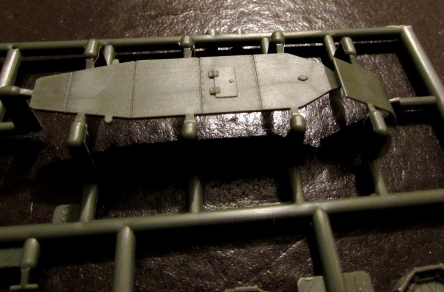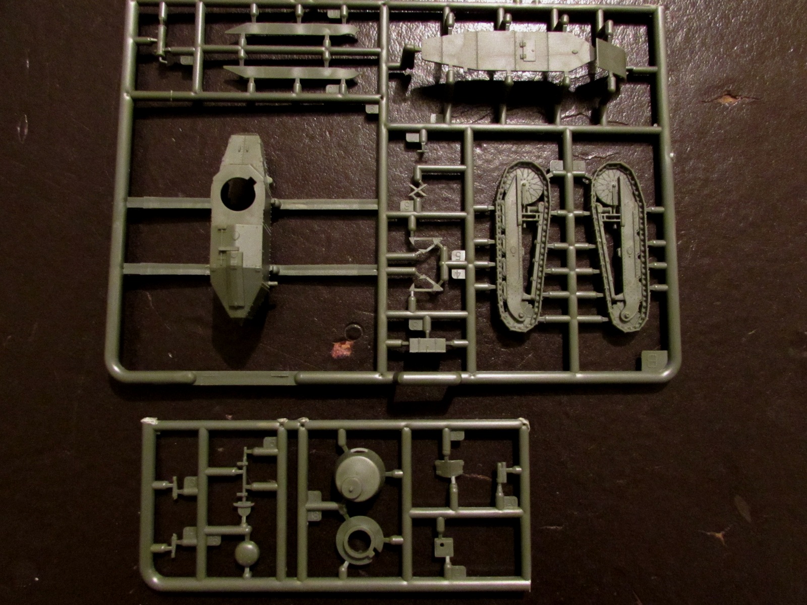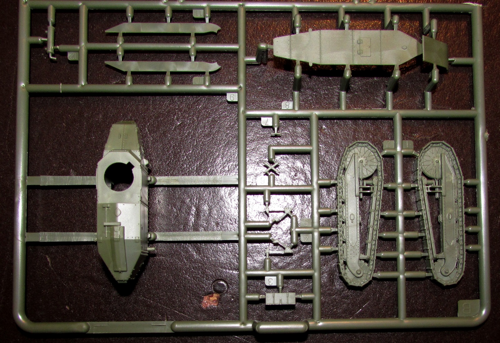 Некоторые моменты даны упрощенно (лопата, кирка, пулемет), но вполне достойно. Единственное, что тревожит - моноблочная ходовая, которую сложно зачистить и красить, и тоненькие оси балансиров, отчего ходовая "гуляет" туда-сюда. Данный дефект легко исправляется некопийными и уродливыми пластинами на днище, крепящими ходовую к корпусу.