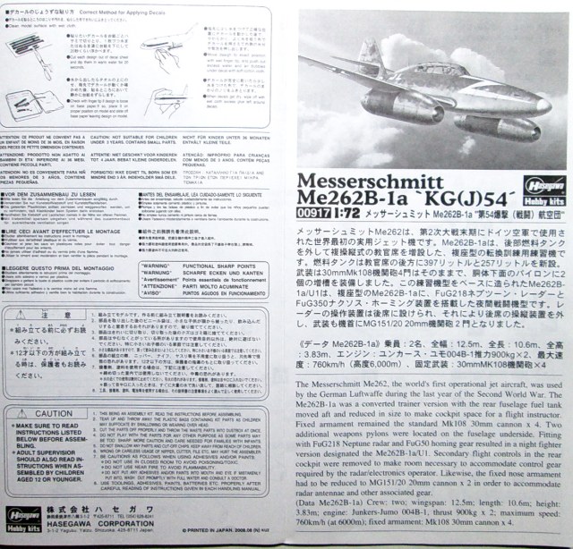 А 262 B-1А/U1 ДВУХМЕСТНЫЙ НОЧНОЙ ИСТРЕБИТЕЛЬ ПЕРЕХВАТЧИК... ТАК ЧТО РЕВЕЛЛ КЛЕПАЕТ ЕГО УЖЕ ДОСТАТОЧНО ДАВНО--Хесагава вообще скорее всего перепак сделала хотя может и доработанный...Интересно летчик в кабине все также сидит у них ниже фонаря на пол метра ?