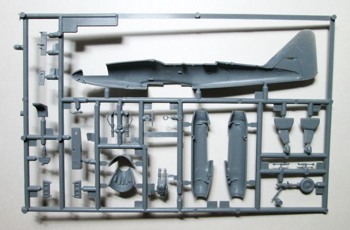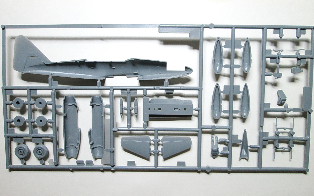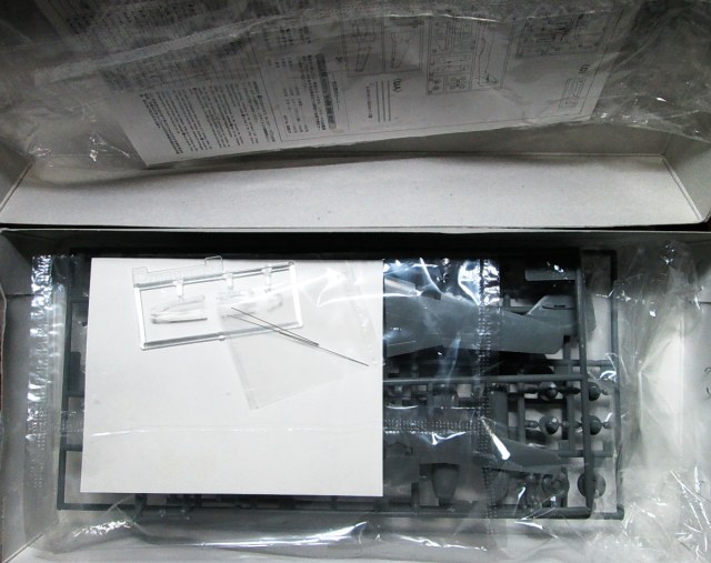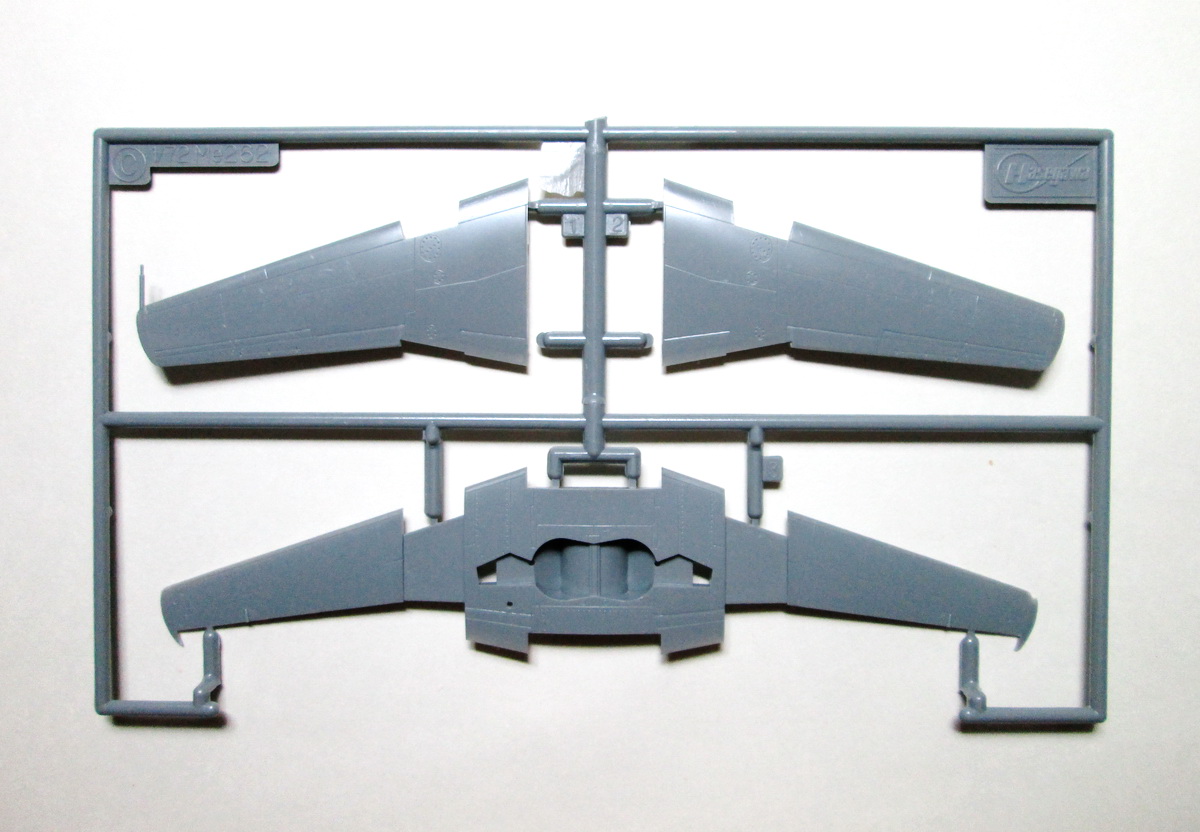 В стандартной хасегавовской коробке с верхней загрузкой находятся 3 литника из полистирола серого цвета, литник с прозрачными деталями, подробная инструкция и декаль на 2 варианта. Также обнаруживается пакетик с тремя металлическими прутками 0,4 мм в диаметре и 40 мм в длину. Из них согласно инструкции изготавливаются фрагменты антенн.