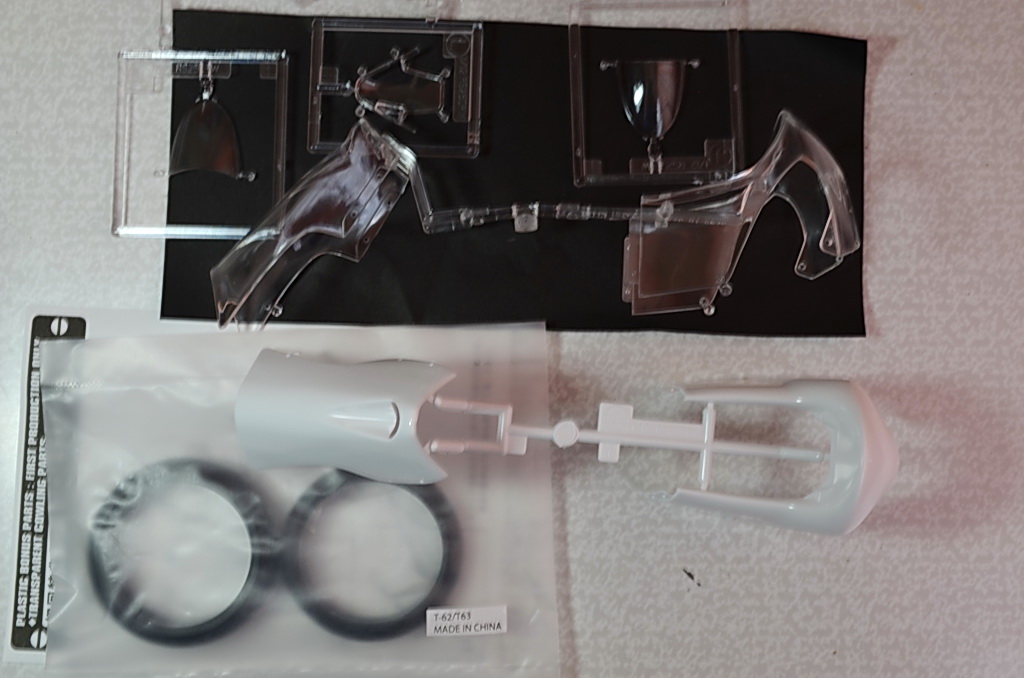 Модель этого мотоцикла была мне подарена в конце 2014 года. Всё не решался начать собирать из-за сложности окрашивания. В набор входят 7 литников с деталями. Исполнение деталей сделано на высоком качественном уровне. В набор дополнительно входят прозрачные детали обтекателя и капота (на выбор), декаль выполнена на одном листе, резиновые колеса и шланги, металлическая пружина.