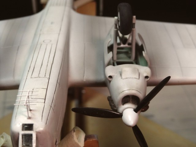 - заднюю турель выточили из куска оргстекла, сделали полностью ее внутрянку по фоткам, поставили пулеметы из смолы от Quickboost,