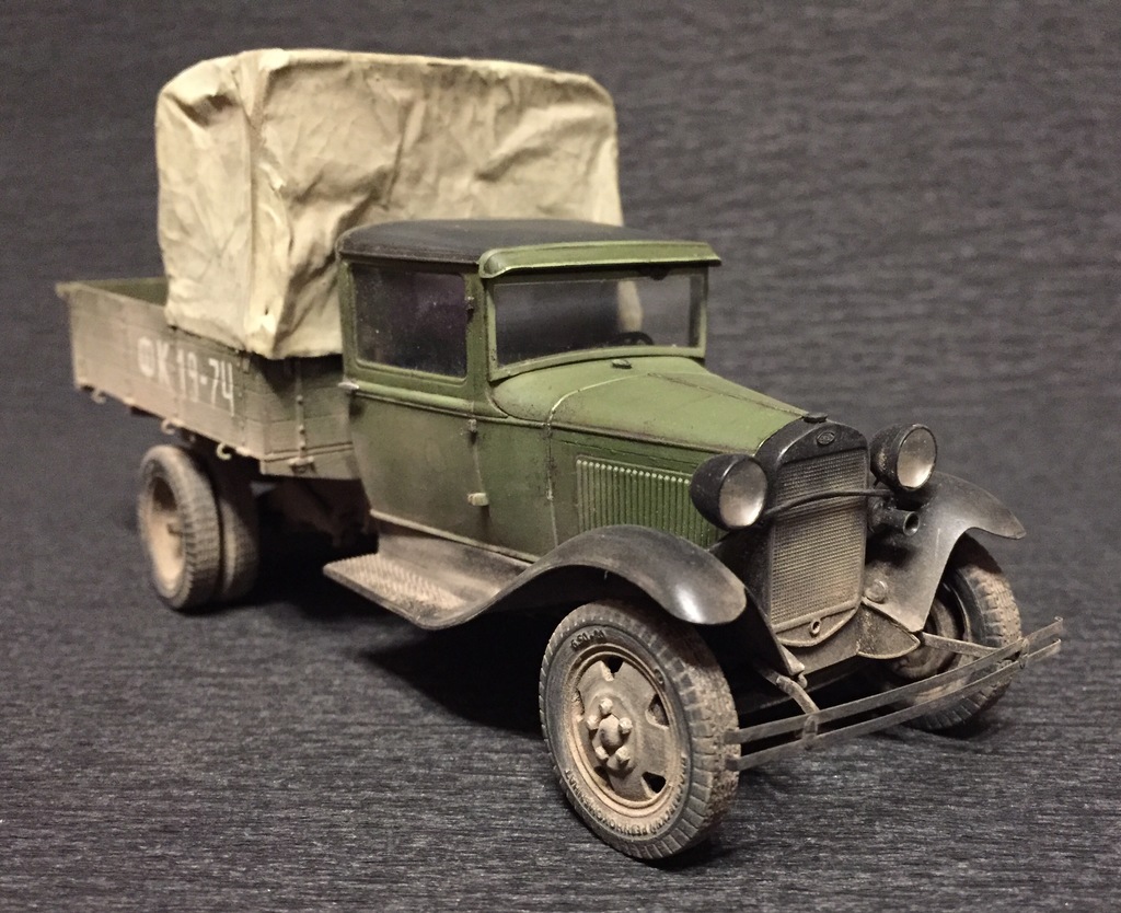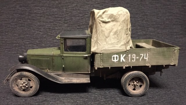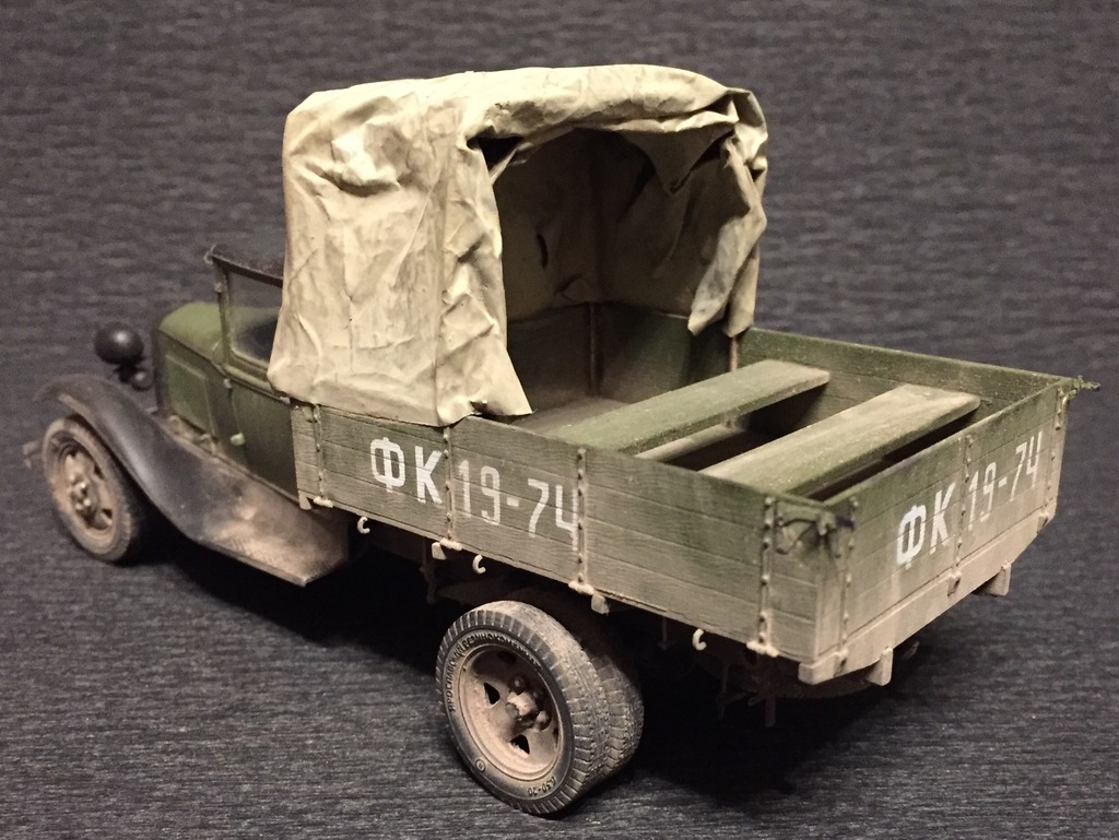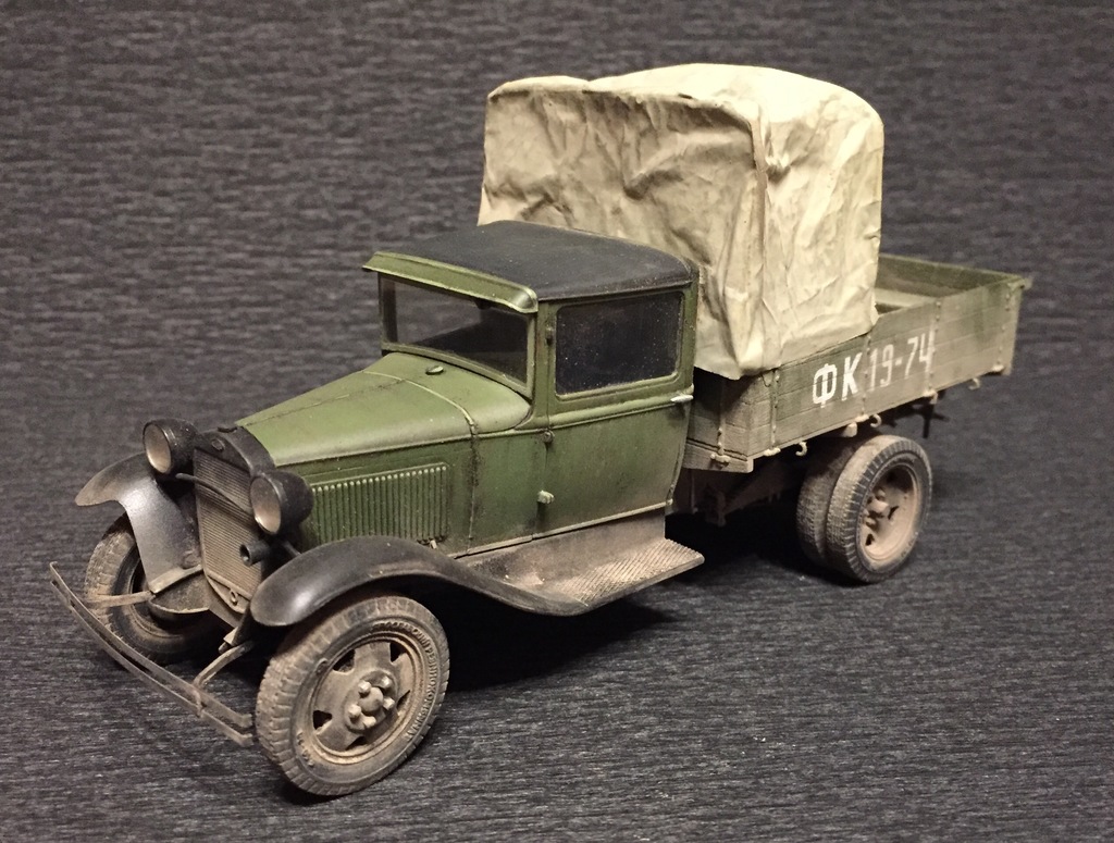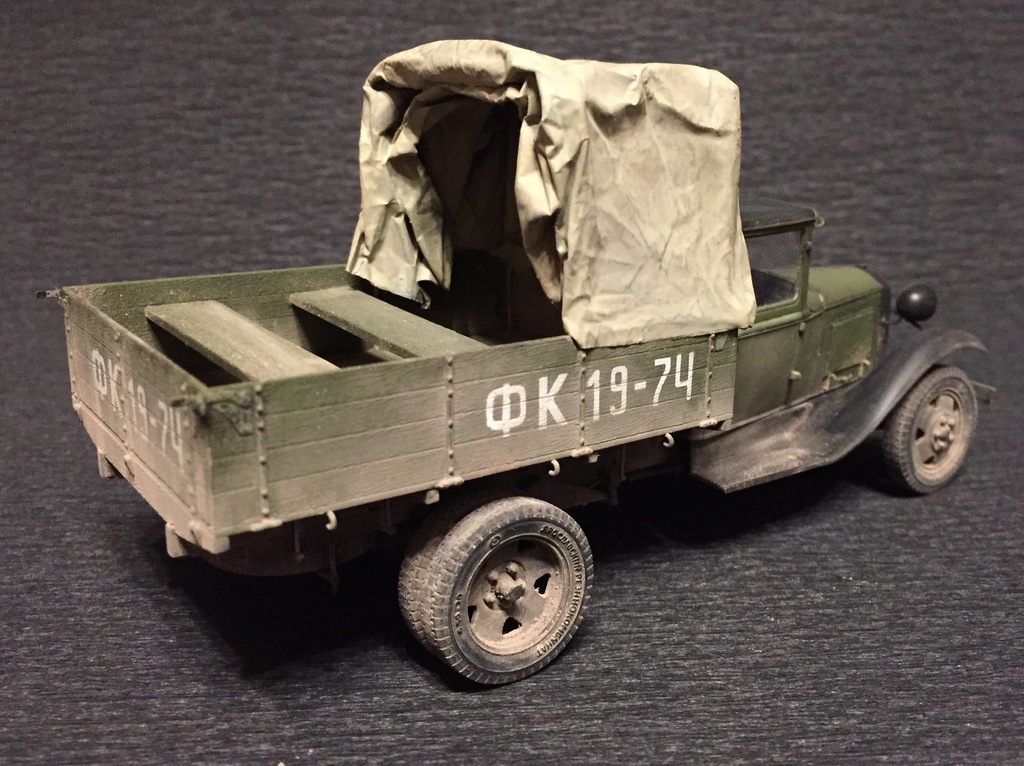 На этот раз с тентом, сам тент бумага из под обуви. Дополнительно использовал смоляные колёса, фары и травление и маски трафареты.