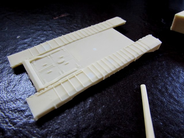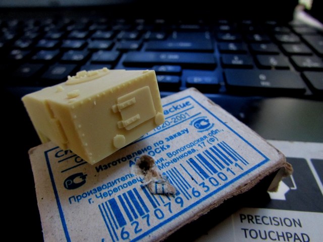 Во-первых, это качество смолы. Если в моделях (например Mark V* от этой же фирмы) смола хоть и прессованная, как ДСП, но весьма неплохая, то смола этой конверсии заставляет вспомнить Wespe, или ранний Zebrano. Не знаю как будет стыковаться все, но проблему со стыковкой родного низа и смоляного верха я уже заметил (впрочем, точно такая же проблема и у родных дрегоновских верха/низа, так что все равно).