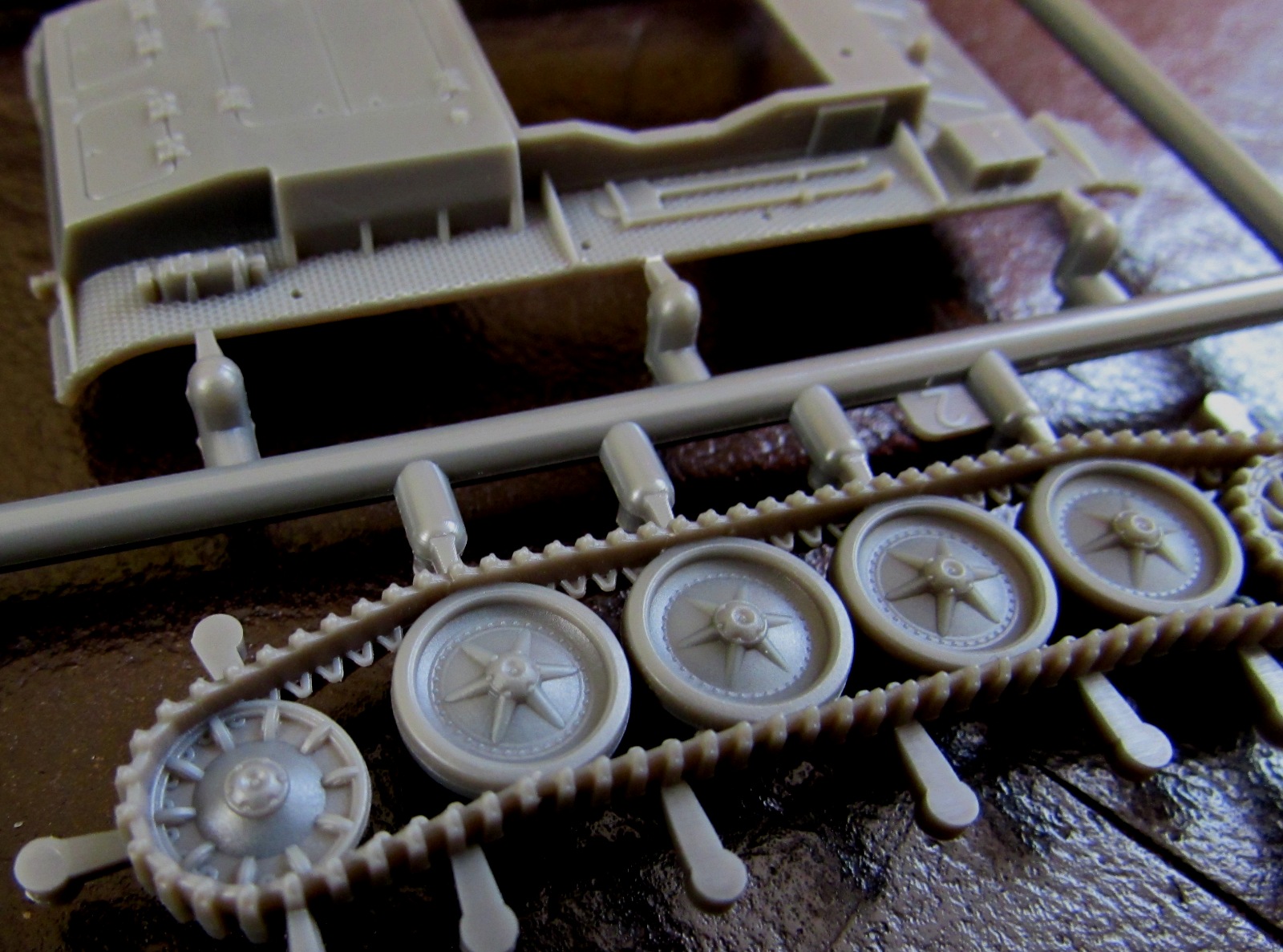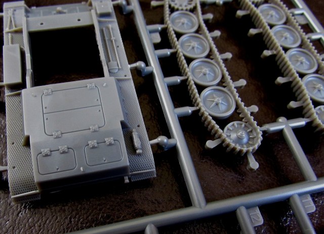 Некоторые моменты даны упрощенно (шанец отлит вместе с корпусом), но вполне достойно. Единственное, что тревожит - моноблочная ходовая, которую сложно зачистить и красить.