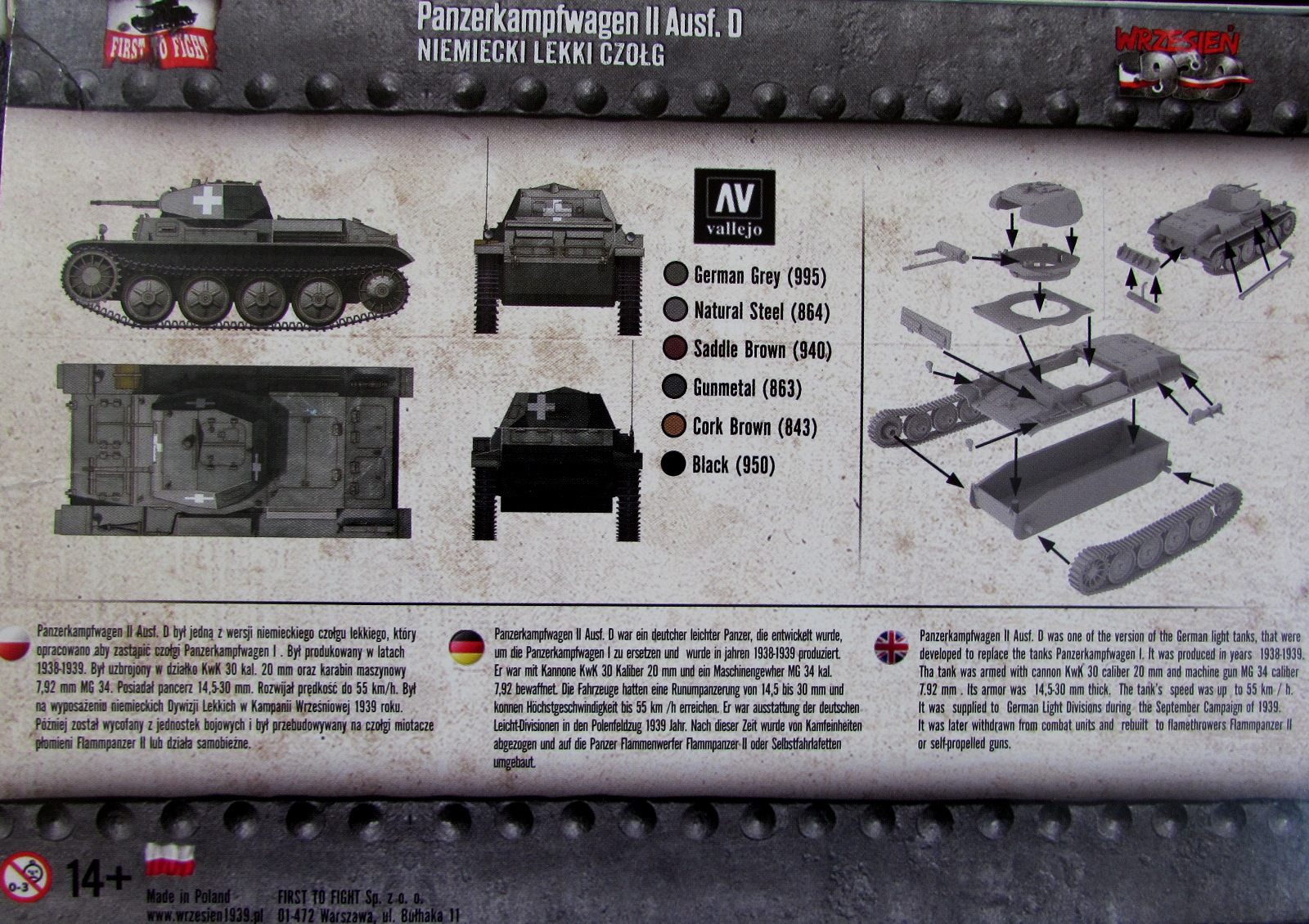 Инструкция традиционно для данного журнала дана на обратной стороне коробки. Там же и схема окраски. Декаль есть - четыре белых креста на 1939-начало 1940 гг. Чуть позже добавлю фото декали.