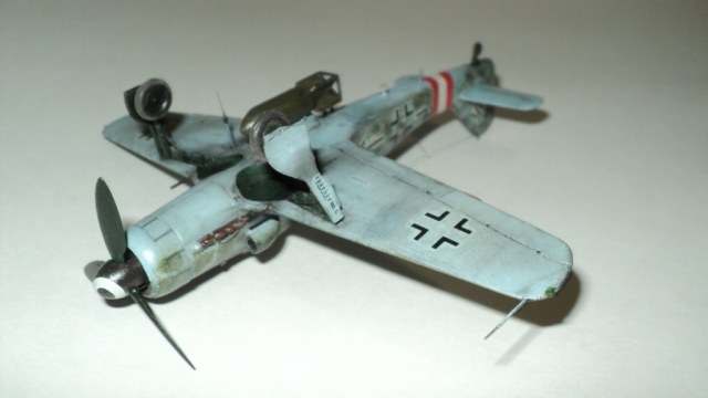 Здравствуйте! Выкладываю на ваш суд модель. "Изкаробочная" сборка, предположительно самолет Герхарда Баркхорна. Собирал и красил стандартными для себя методами. Краска - акрил, пастель, матовый лак. Красил кистью.