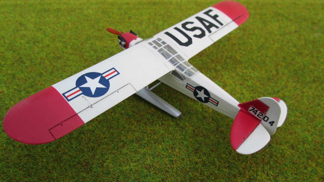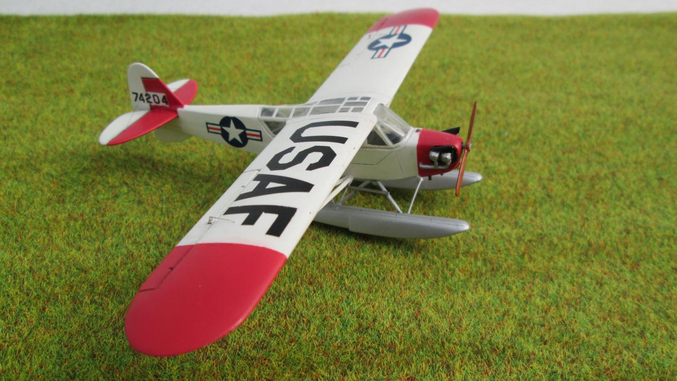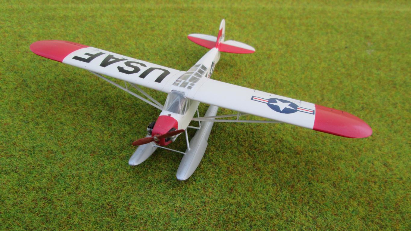 Приветствую коллеги!Выставляю на Ваш дружеский суд свою модель сверхлёгкого высокоплана L-4Грасхоппер в гидроварианте.Самолёт довольно широко известный, благодаря своим многоцелевым возможностям.В военное время использовался как учебный, связной,штабной,самолёт-разведчик,также использовался как гидросамолёт,в мирное,как самолёт первоначального обучения и туристический.Прост и неприхотлив в эксплуатации и производстве.Теперь о модели:сама модель особых хлопот не доставила,стыкуемость приемлемая,доработал винто-моторную группу,сделал заново каркас кабины из медной проволоки,дополнил самодельными органами управления.Стекло не менял,из-за его сложной формы,приклеил на суперклей,за что поплатился испарением циакрилата внутри кабины,приведшим к его частичному помутнению.Красил бытовой нитрокраской,декали толстоватые,долго с ними боролся,но приварил.Всем приятного просмотра.