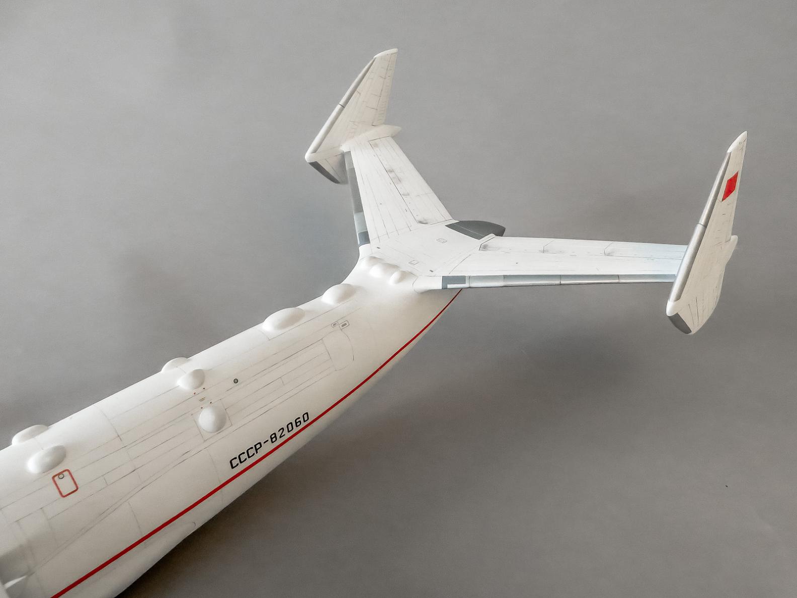 Для увеличения длины фюзеляжа была сделана одна вставка в районе центроплана, а так же были отрезаны фюзеляжи обоих Русланов на разной длине. Перед центропланом и позади него. За счёт соединения одной части фюзеляжа с другой, была достигнута нужная длина. Небольшая разница в профилях была зашпаклёвана двухкомпонентной тамиевской шпаклей и авто шпаклёвкой Body-soft (до чего же вонючая и мерзкая гадость !!!).