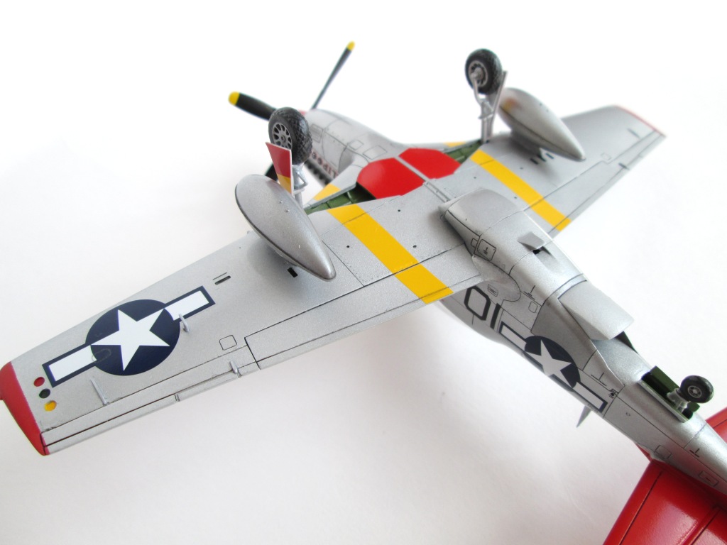 Дык считается, что крыло шпаклевалось и красилось серебрянкой. Т.е. фюзеляж - дюраль, крыло - серебрянка. Я подумываю, как именно это отображать, когда дойдет очередь до Мустангов. Понятно, что нужно два разных металлика. Но боюсь, что при обычной технологии, футура-декаль-футура-смывка-мат-пудра-сатин, вся разница сойдет на нет. Но попробую, Мустангов у меня много :-)
