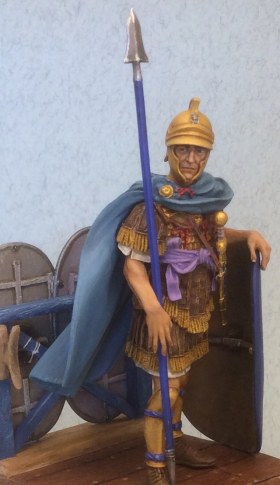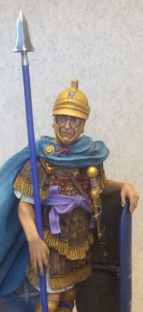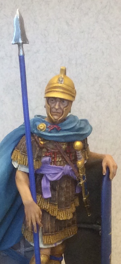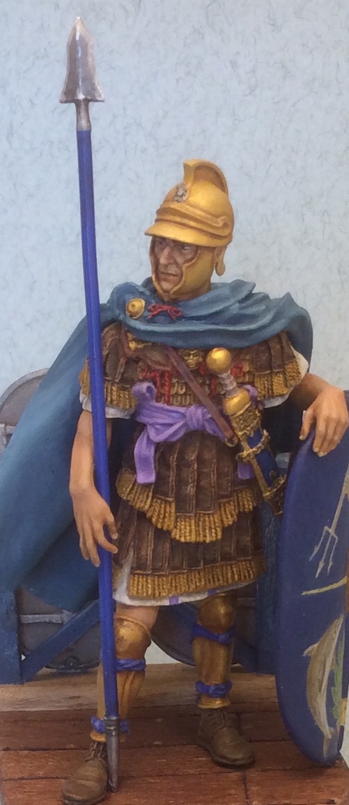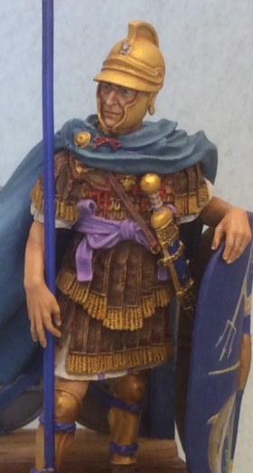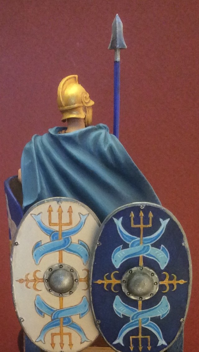 Понравилось. И даже очень. Плащ, лицо, доспех,щиты - все хорошо и гармонично. На последнем фото край ограждения борта - наверное синей краски на срез не хватает))). Отличная работа.
