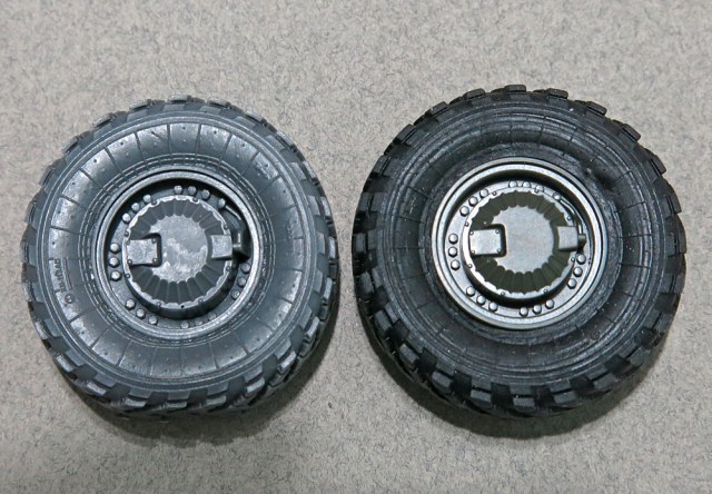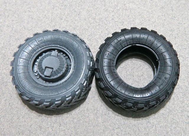 У DEFa сильно просажены ступицы внутрь относительно боковин покрышек, что на готовой модели будет смотреться нехорошо.
