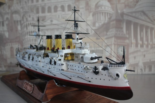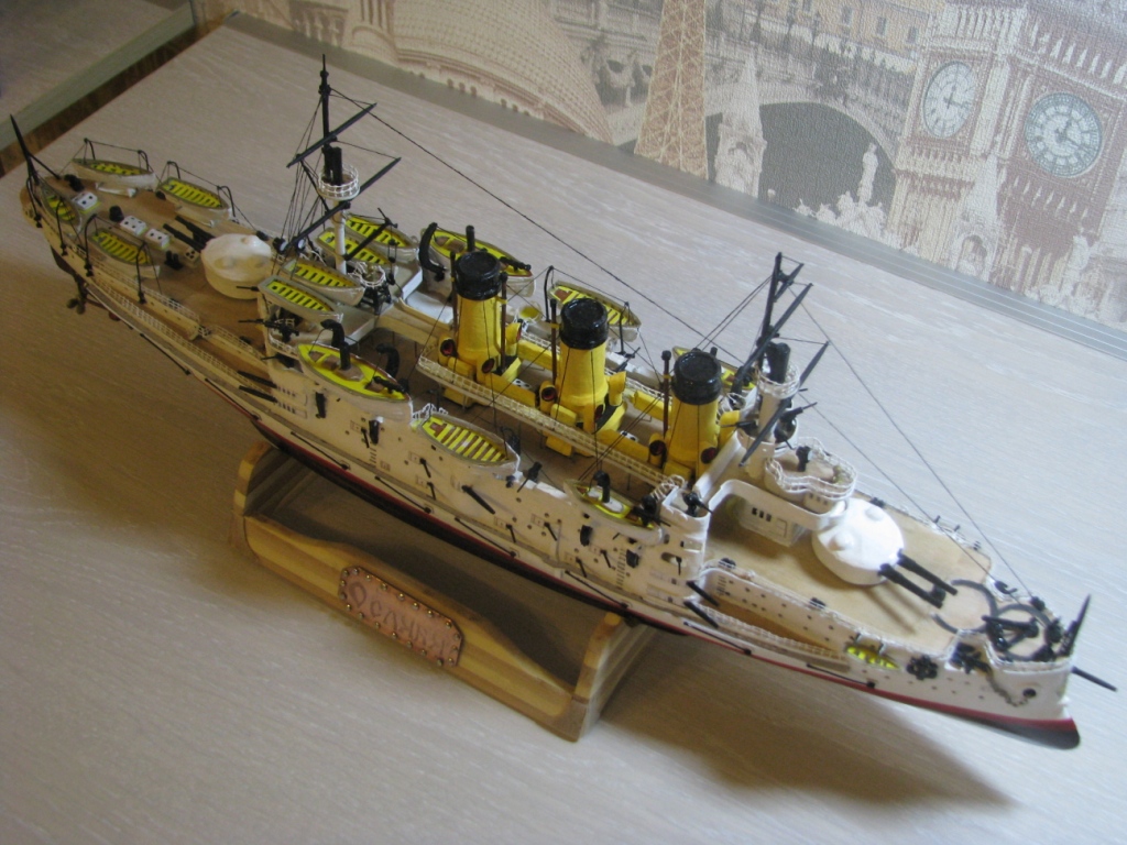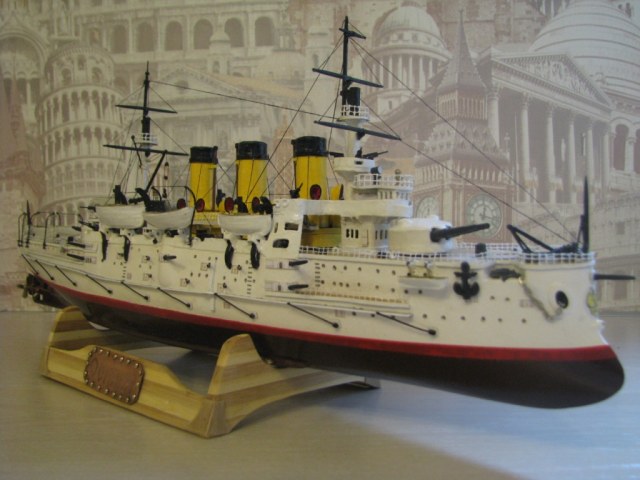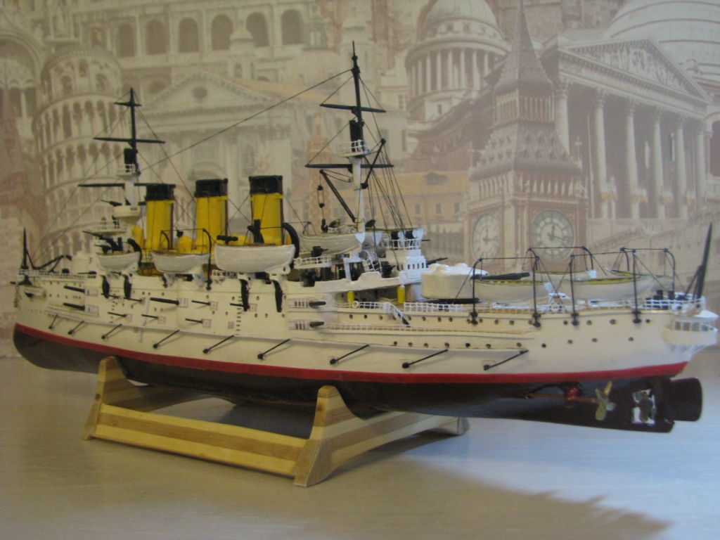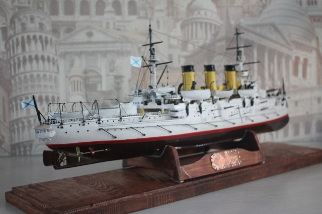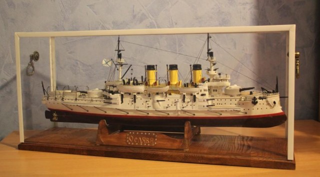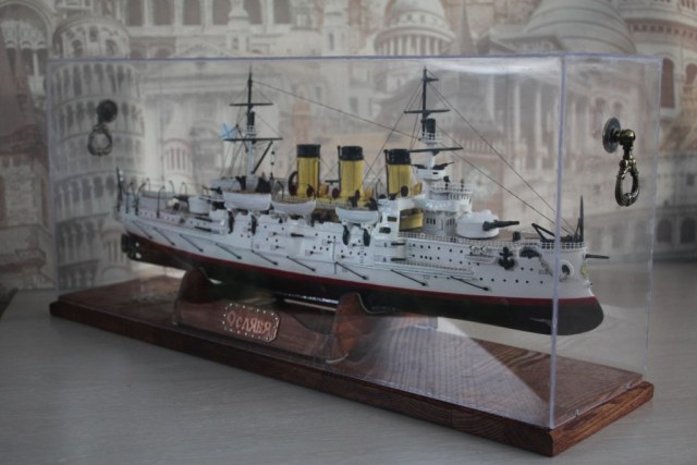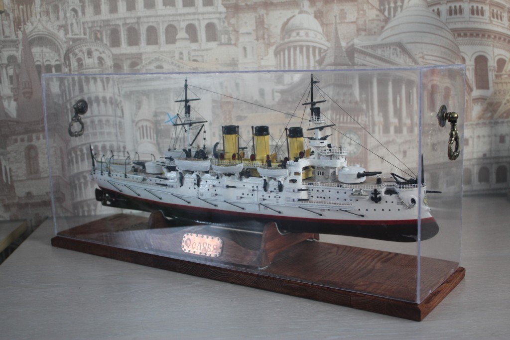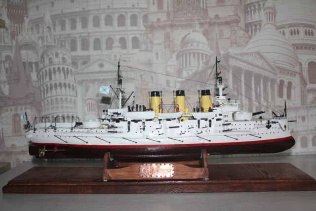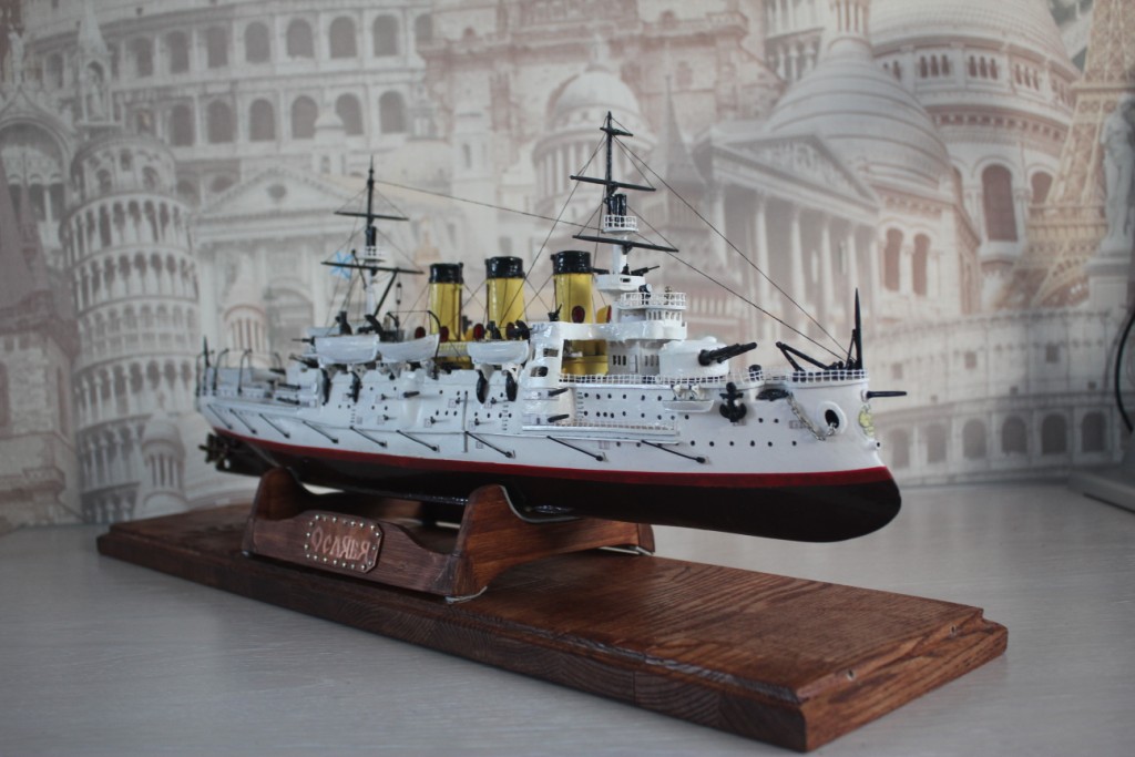 На этом история модели ЭБР не закончилась. "Ослябя" простоял дома, в базовом порту совсем не долго-всего пару месяцев. Кто то из друзей проговорился и хозяин одной антикварной лавки выкупил у меня модель для интерьера магазина. Совсем недавно я попытался было вернуть "Ослябя" , однако броненосца там уже не оказалось - перепродали, а куда - не известно.
