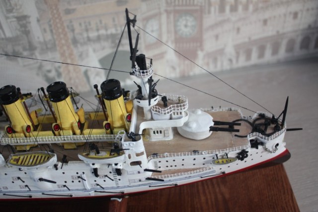 Модель не масштабная, это просто винегрет какой-то. Отдаленно напоминает броненосцы типа "Пересвет", но не более.
