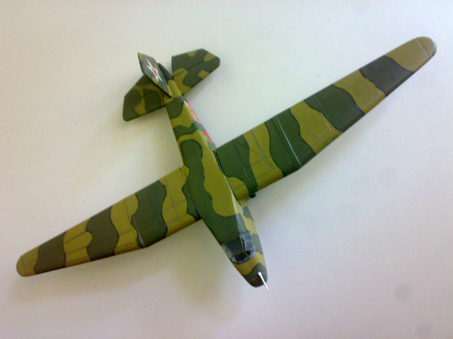 Работа к сожалению очень слабая, особенно удручают стыки и шели между крыльями и фюзеляжем, при сборке следующего самолета обязательно шпаклюйте и зачищайте швы стыков половинок деталей. А данная работа может претендовать только на раздел Песочница. Пока работу отправляю в Личные.