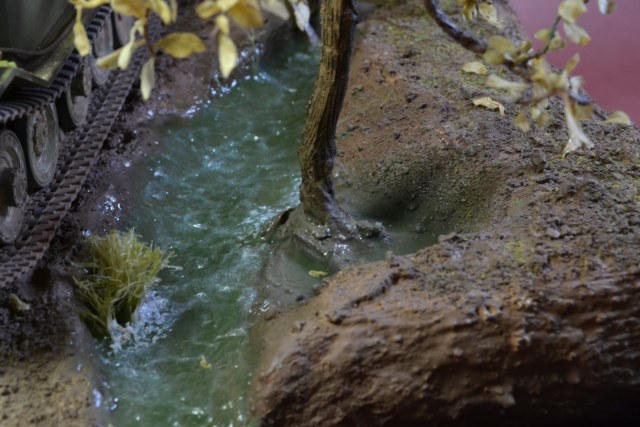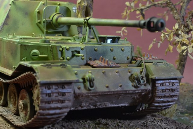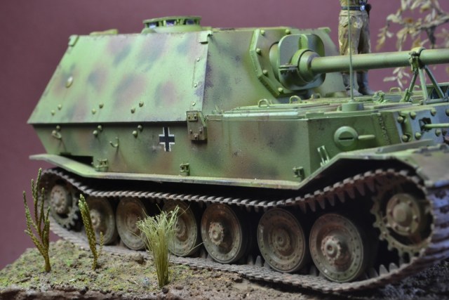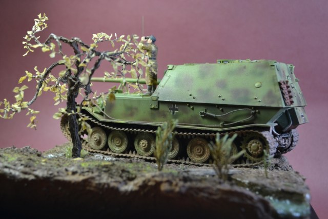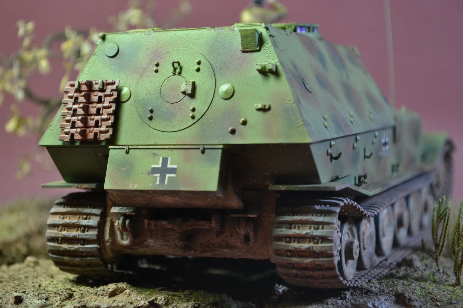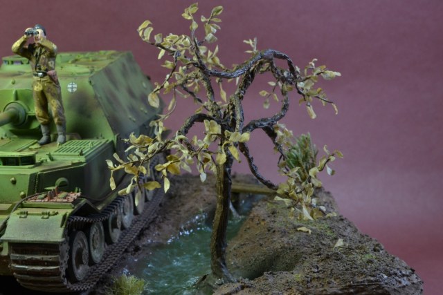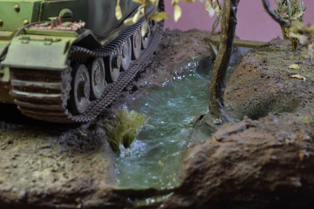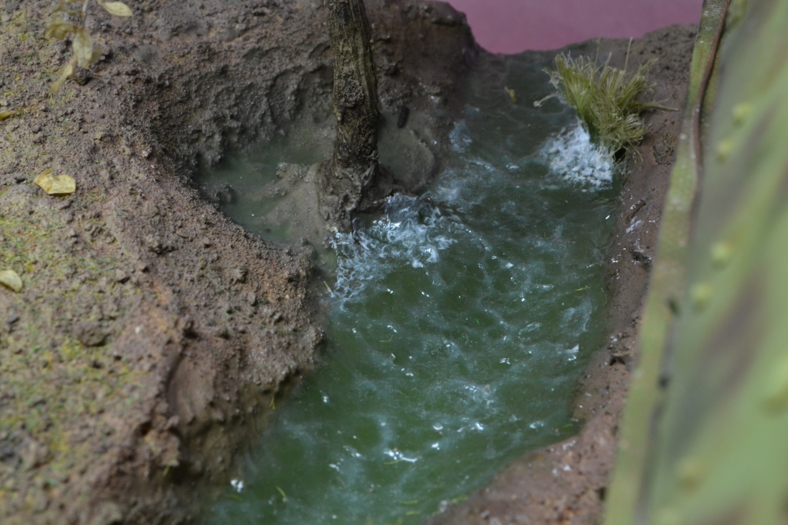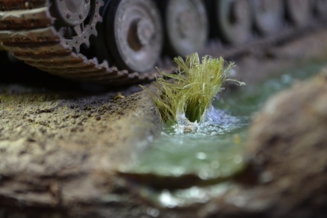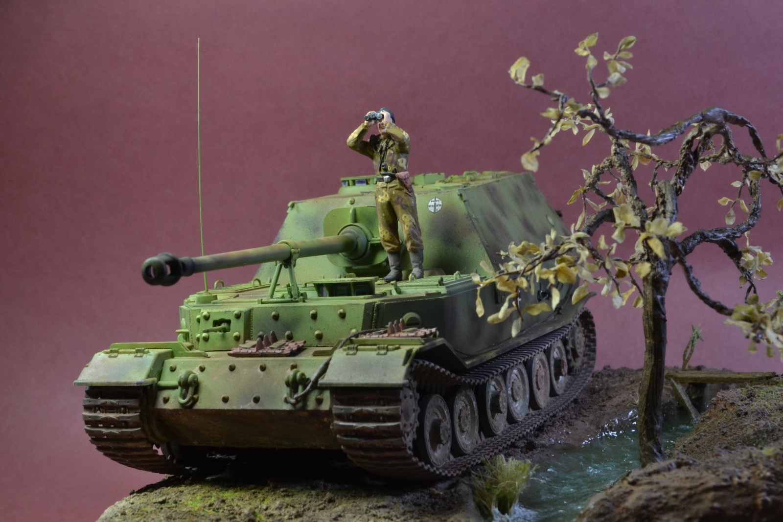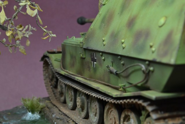 По работе, как уже и говорили, подставка, ручей, растительность на отлично, в покраске машины замшелости не углядел, всё сделано как надо(ИМХО)... но вот цвет, и ещё более усиливающий цвет фона ассоциируется не как со слоном 2й Моровой, а скорее с Вахаммер, что то такое космическо-потустороннее... камок на такисте тоже понравился.