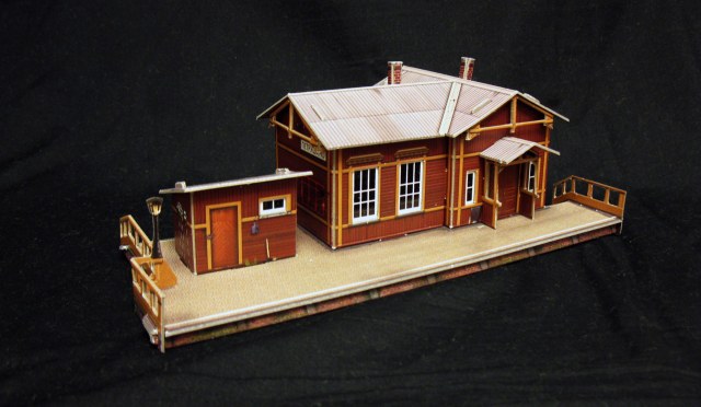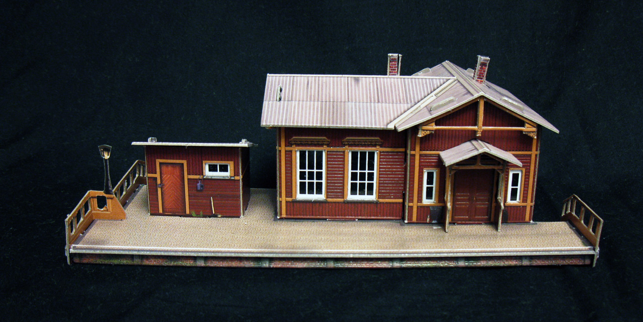 Про станцию впечатления очень хорошие,немного портит вид "плоский" фонарь.Можно попробовать из литников или стержней от ручек изготовить объемный(?).Поезд немного "проигрывает" внешним видом рядом со станцией)