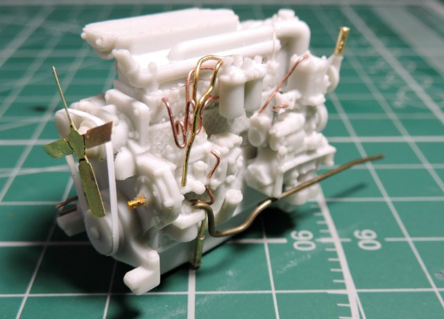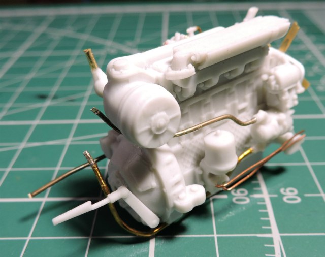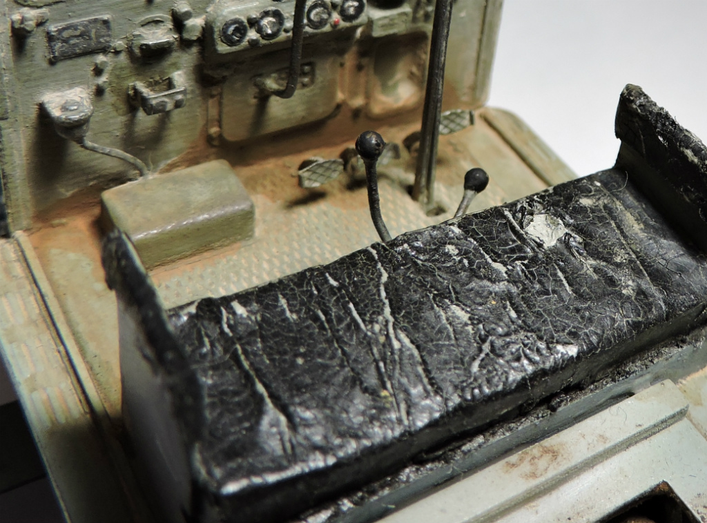 По модели - набор отличный, смола отлита качественно, собирать приятно. Есть, конечно, нюансы при сборке, но у кого без них. Инструкция только слишком уж упрощена. Из доработок - двигатель (шланги, трубки, тяги, ремень), радиатор изнутри (в наборе дан плоский фототравленый кружок, установил на него сетку), заменил педали (также даны плоским травлением, вырезал из рельефного), сделал направляющие дверей, установил болты осей тележек от MasterClub (болты в наборе почему-то отсутствуют).