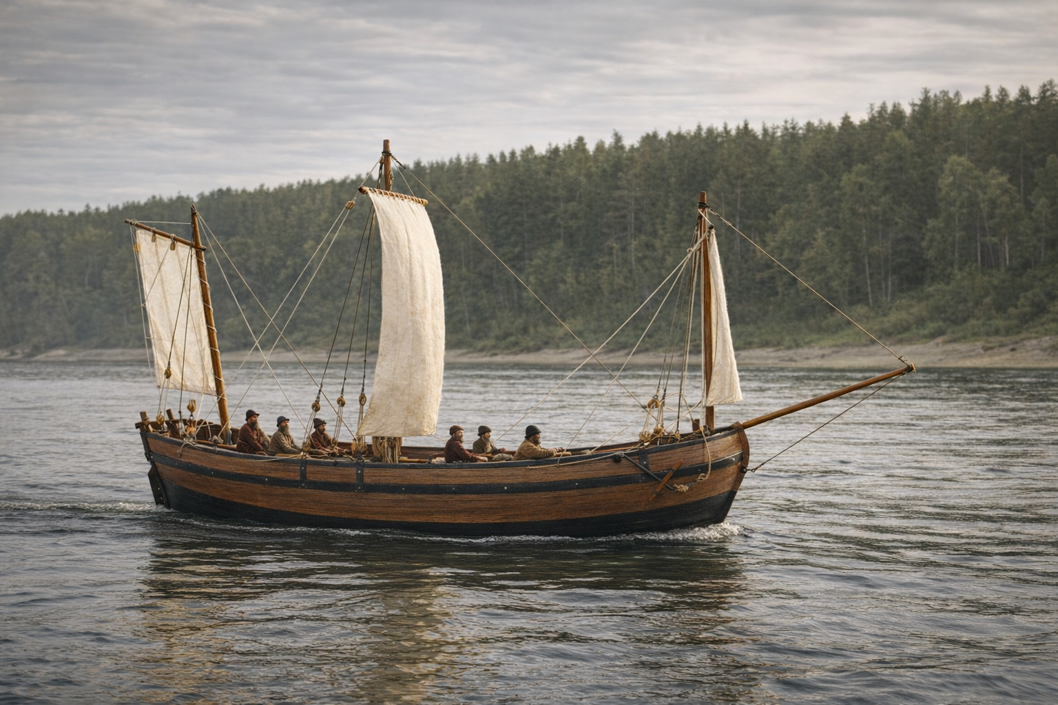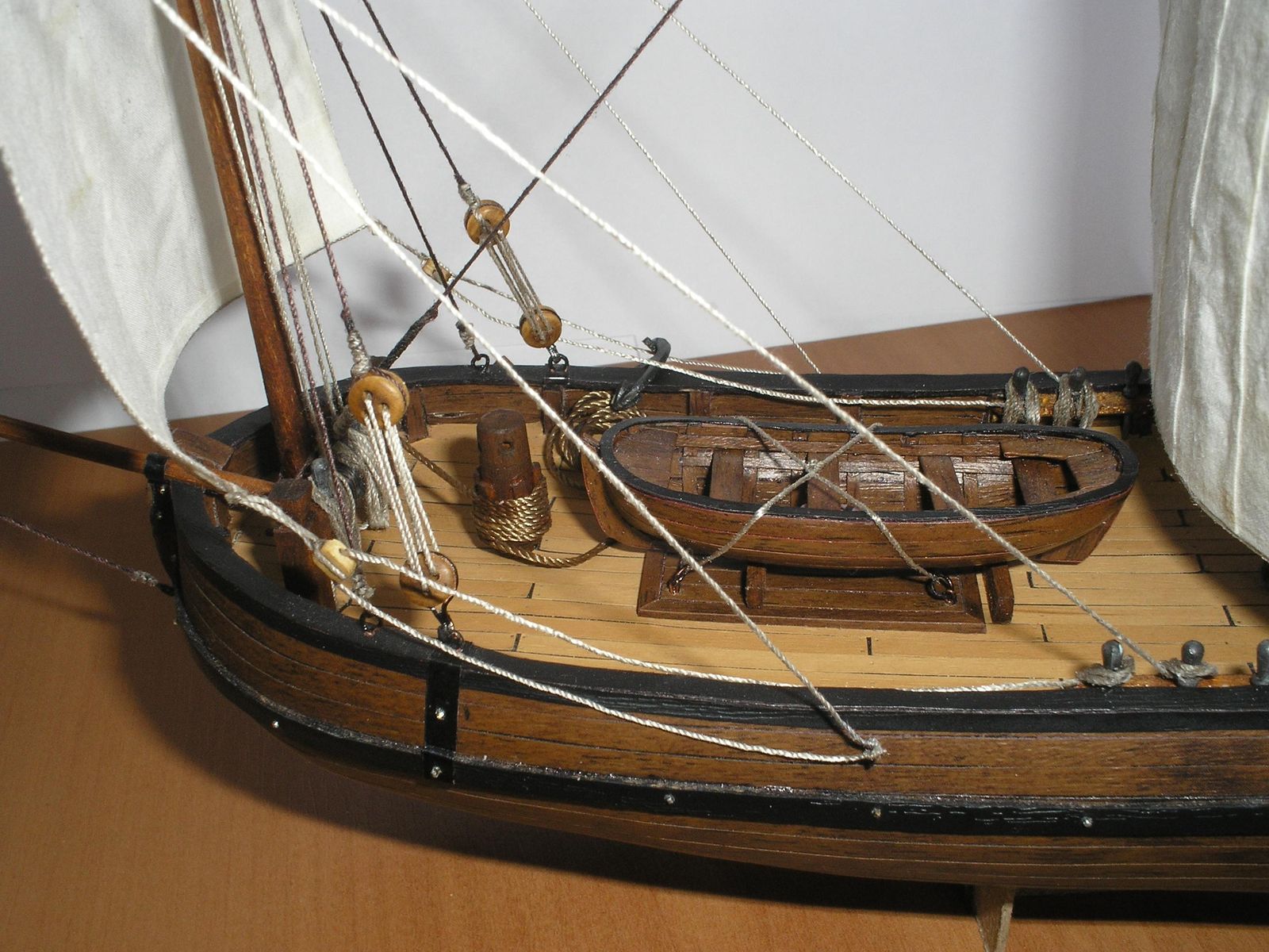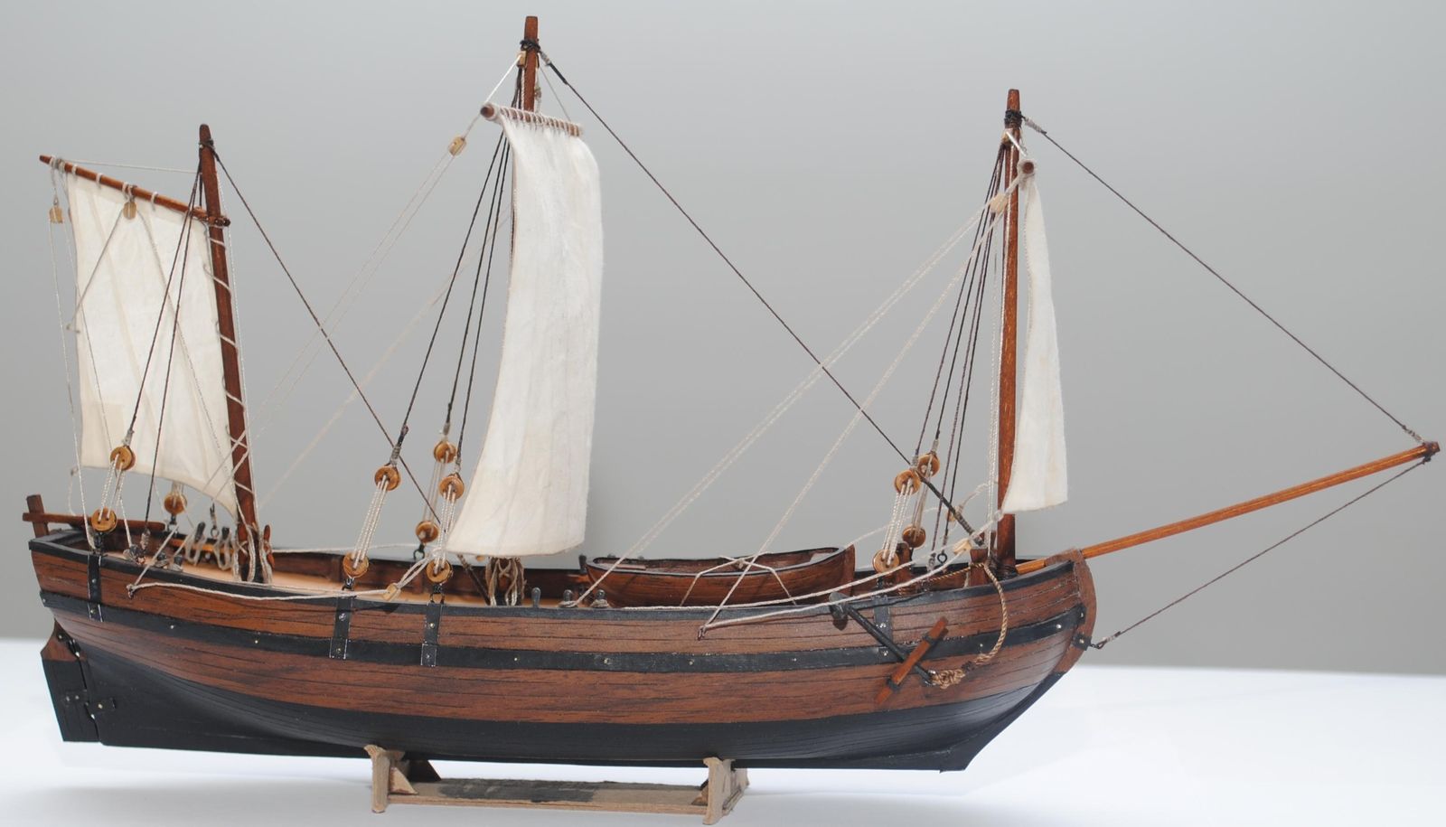 Поморская ладья ЮТ для умелых рук №8 1983 г. Музей на столе. Кораблик делался в 2013 году. Корпус из картона + шпаклёвка по дереву и грунт. Обшивка самоклеющейся плёнкой под дерево 3-х разновидностей. Мачты - кисточки, реи -бамбуковые шпажки, юферсы - "верфь на столе", нагели и блоки из деагостиниевской "Виктори". Впоследствии сильно пожалел, что не обшил корпус деревянными рейками, по моим ощущениям трудоёмкость работы с плёнкой выше, а результат в итоге хуже.
