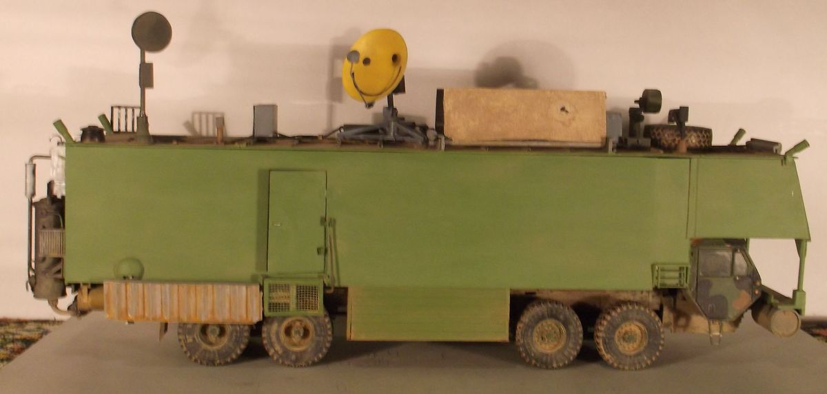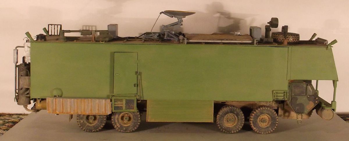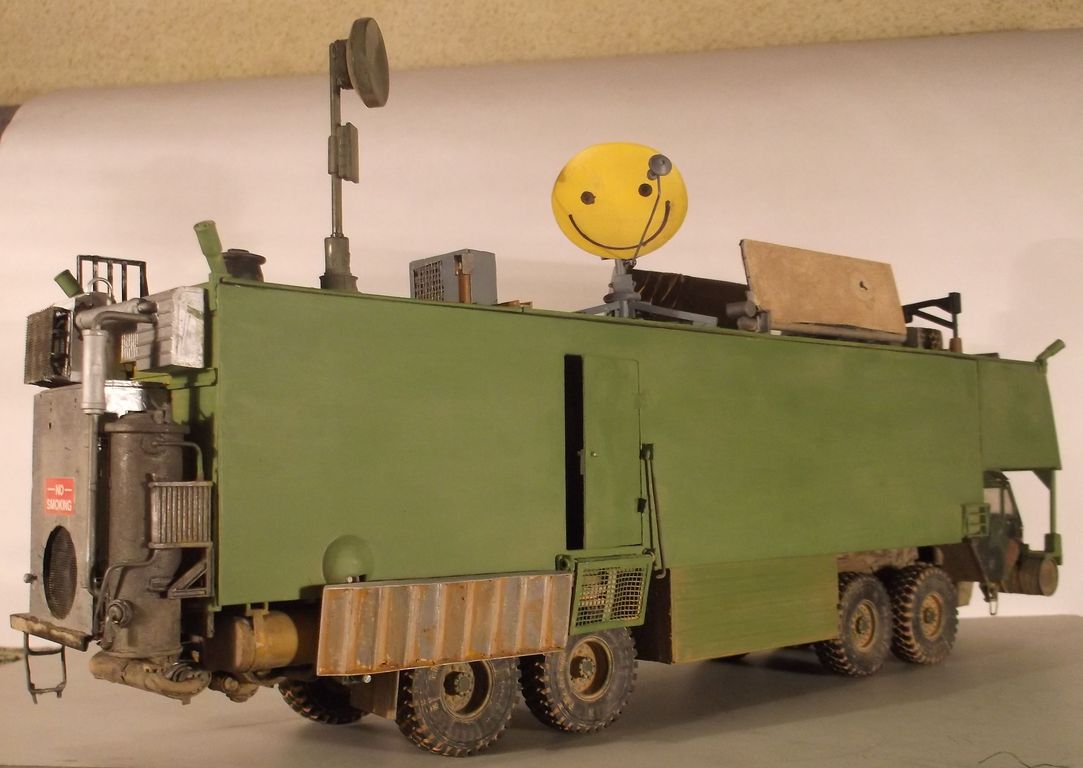 С одной стороны - понравилось такое внимание к нутру - всякие столы с картами, кухня(хотя две машинки имхо многовато - засранцы чтоли?) задняя часть. невнятные средства связи и управления - более понимающие люди выше отписались. Основной вопрос у меня вызывает кузов. Из чего он? если это стальные бронелисты - должны быть места сварки, а следовательно швы, ну или заклепки, а внутри какие-нибудь силовые балки - при такой конструкции она на первых же ухабах развалилась бы. Почему это нужно - да хотябы для того чтобы заполнить пустоту огромных стен. Окошки какие-нибудь бы тоже были кстати. Грязь. Вы когданибудь видели автомобили в дождь? брызги из под колес попадают далеко за границы колесных ниш. в том числе это справедливо и для вашей машины. Добавить бы побольше следов эксплуатации имхо. каких-нибудь сколов, а то совсем уж как новая, хотя сзади видно стершуюся краску на ступенях. ну и на крыше должно быть прилично пыли, там же ее никто не вытирает.