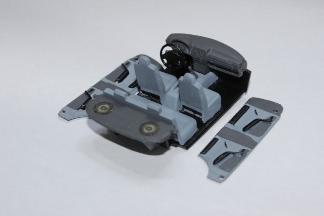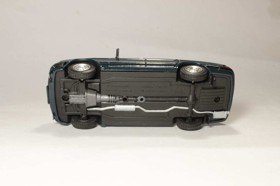 Стандартный перекрас модели из журнальной серии с мелкими доработками, например такими как: доводка передней и задней оптики, оформление агрегатов на донышке, окраска салона, восстановление бортовых молдингов, перекрас самого кузова модели из черного в сине-зеленый цвет (мурену), фототравление шильдьиков на крышке багажника, ну и еще некоторые другие мелкие ништячки.