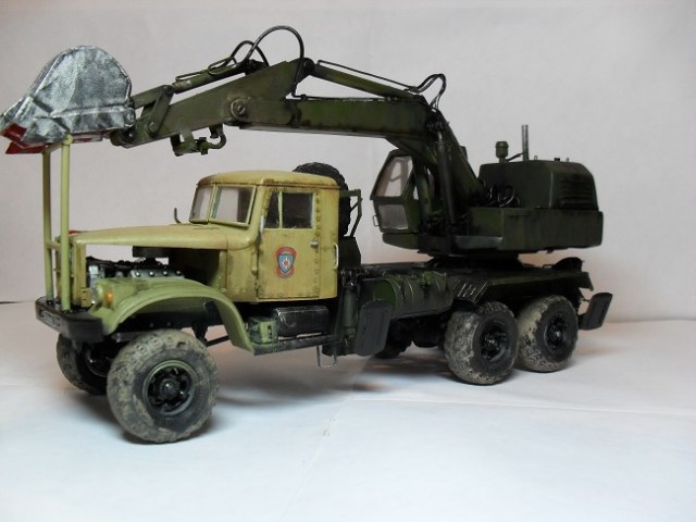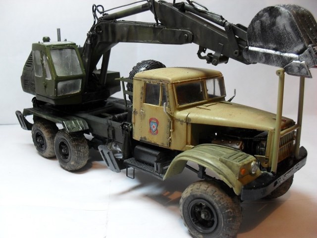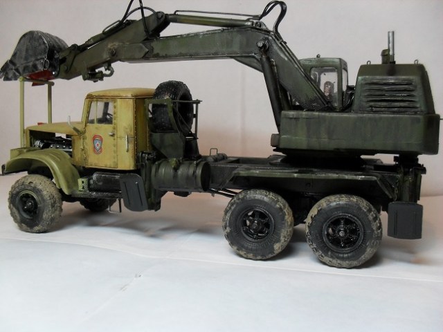 Отличная, живая работа! У нас в в/части такой был, только кабина зелёная. Аппарат был на расхват, и пользовался уважением (Кому котлован под дачу, кому песок из Мерлеево на гаражи!):-))) С уважением.