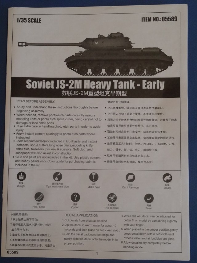 Решил сделать обзор на модель ИС-2М в масштабе 1/35 - новинка от китайского производителя Trumpeter. Набор произведён в 2016 году.