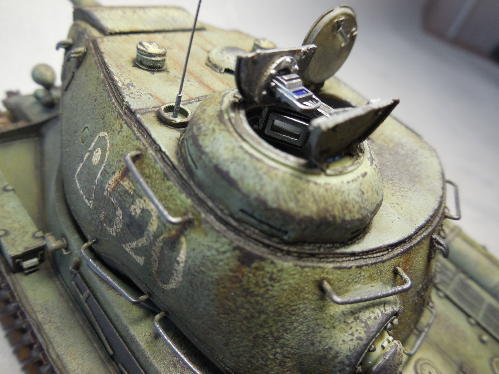 Спасибо за такое пристальное внимание к работе и за замечания.В принципе это логично,что кто нибудь да будет искать какие либо недачеты,придирки.Это хорошо.По поводу швов на баках,то как я уже писал,они изготовлены из латуни и как можно сделать шов на спаяном гладком металле по другому,я не знаю.Подскажите свой вариант,я приму его к сведению,только не говорите что надо сначала загрунтовать метал,а затем шпаклевкой по грунту сделать шов.Что касается трещин,то это не трещины, а сварной шов корпуса идущий по диагонали за гусеницей,а в другом выделенном вами месте,то поскольку я текстурировал броню, получилась бугристая,неровная поверхность из за чего создался такой эфект возможно напоминающий трещину.Отверстие водостока было одно с правой стороны погона,под скулой если смотреть по ходу движения,да есть такой,но я ни дотошный мат частник,я рассматриваю моделизм в первую очередь с художественной точки зрения,понимаете.По поводу всего остального,не очень хочется дальше писать,извините.Еще раз спасибо за внимание к работе.С уважением.
