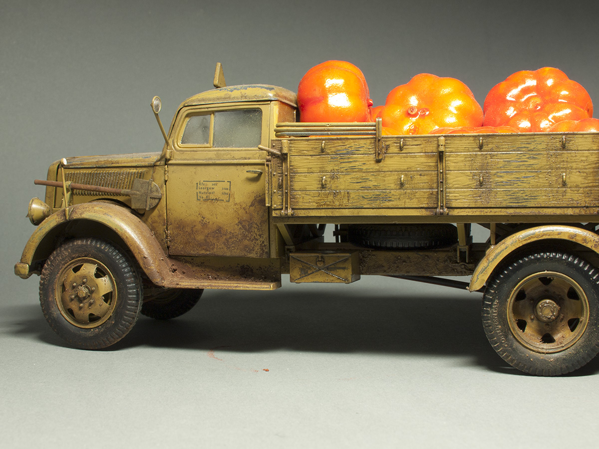 Легенда: Грузовик тыла, выполняет грязную работу, в данном случае везёт урожай тыкв... Тыква уродилась рекордная ;)