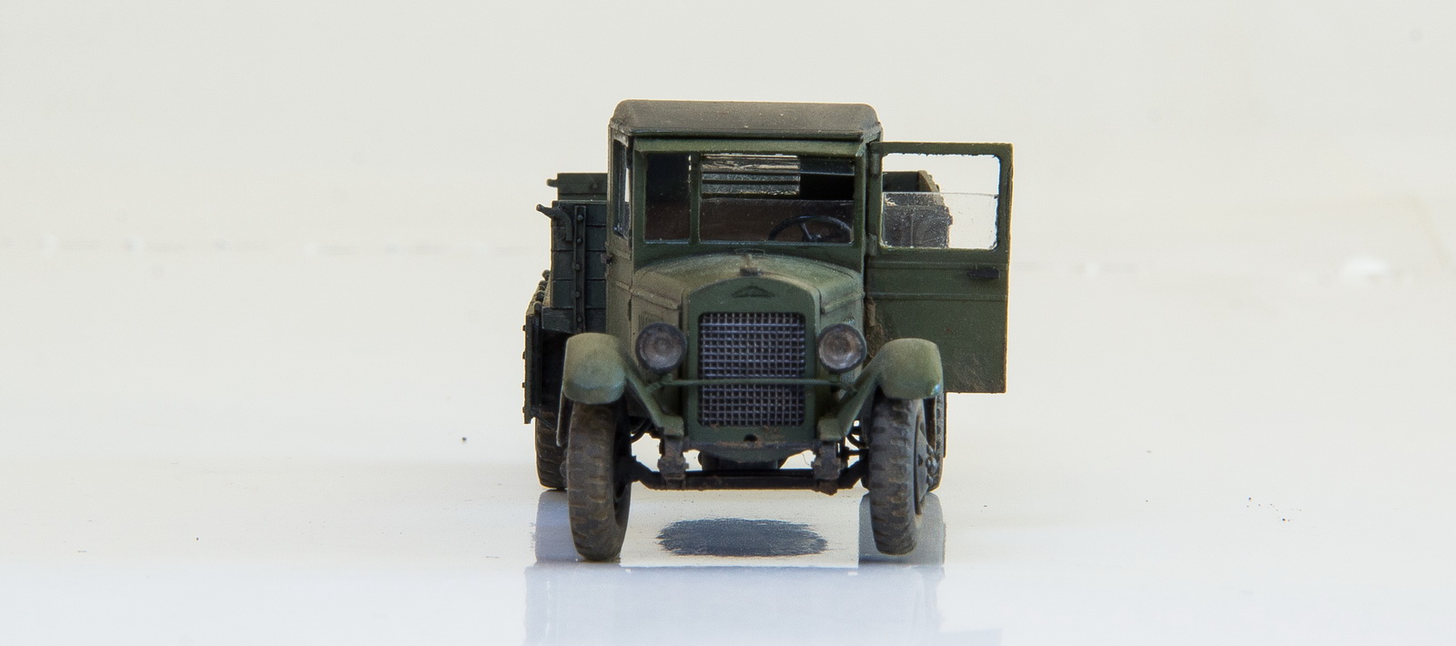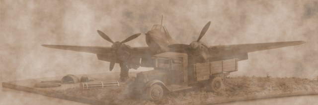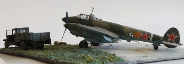 Поднятое переднее левое колесо - не ошибка, машина должны встать (уже встала) на неровность грунта в диораму, где бравые бойцы будут с нее разгружать бомбы.