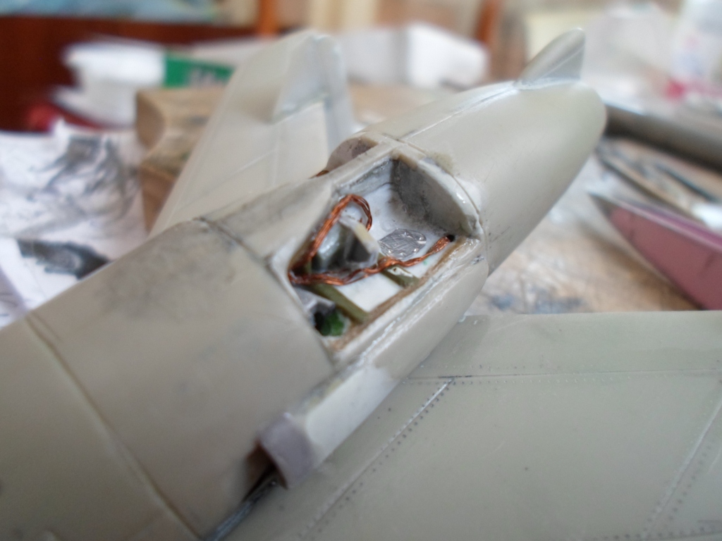 Только при нарезе расшивки снизу видно рука с резаком дрогнула - надо было зашпаклевать. Как Макс уже заметил правильно, створки передней ниши шасси толстые и на фоне самодельных створок основных стоек шасс и смотрятся проигрышно.