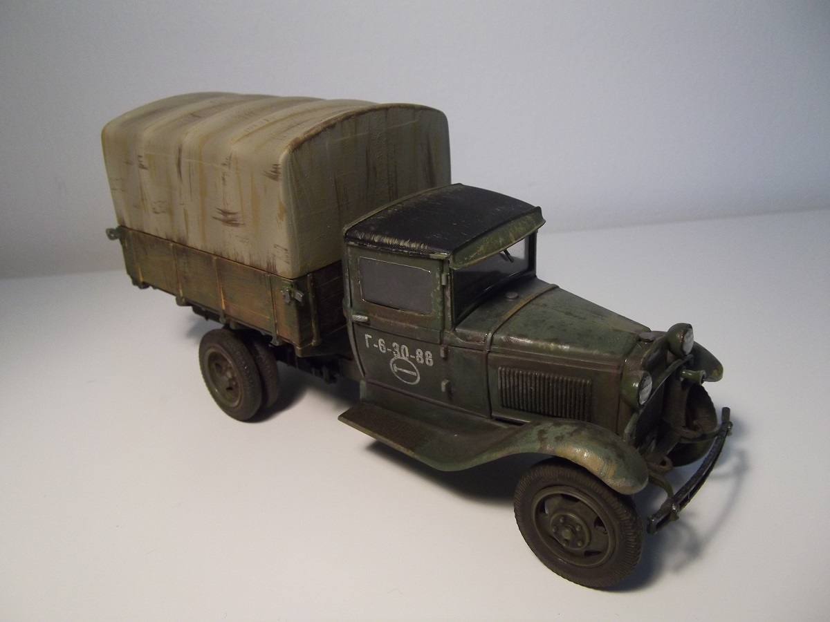 Представляю модель полуторки ГАЗ-АА. В качестве базовых моделей для производства были определены легковой автомобиль Форд-А .29 января 1932 года с конвейера сошел первый грузовой автомобиль Нижегородского автозавода . При всей своей простоте автомобиль был технически достаточно совершенным. На нем устанавливался четырехцилиндровый двигатель рабочим объемом 3285 куб. см, который при 2600 об/мин развивал мощность в 42 л. с. Запас хода по топливу составлял 215 км. Грузоподъемность автомобиля при собственной массе в снаряженном состоянии 1810 кг равнялась полторы тонны. Отсюда и происходит его прозвище «полуторка».Полностью из советских комплектующих ГАЗ-АА собирался с 1933 года. До 1934 года оснащался кабиной из дерева и прессованного картона. С 1934 года получил металлическую кабину с дерматиновой крышей.