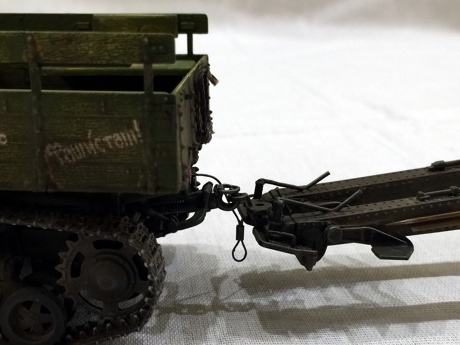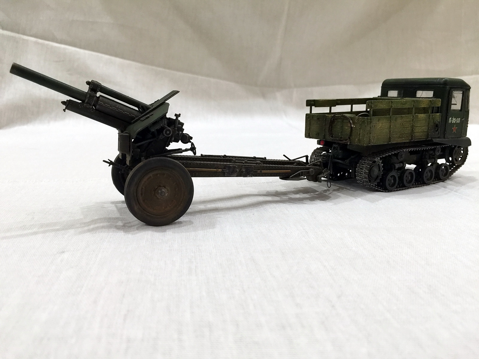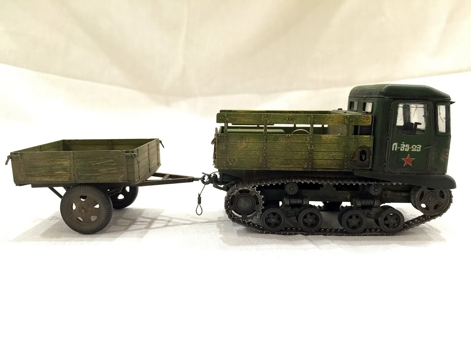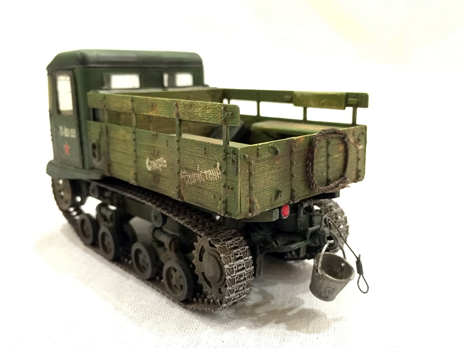 Стройка модели заняла месяц: 09.05.16 – 08.06.16. Качество деталей оцениваю на «четыре» (есть небольшие огрехи у деталей, но они решаемы простым путем). Покраску делал красками от А-Model. Опять решил попробовать жидкость для создания эффекта потрескавшейся краски от этой же торговой марки на крыше кабины. Что из этого получилось – видно на фото. Для зрелищности пришлось параллельно сделать какой-нить прицеп. Под горячую руку попала советская гаубица М-30 и автоприцеп АП-1 (хотя последний исторически никак не вяжется с СТЗ-5). Вот и все.